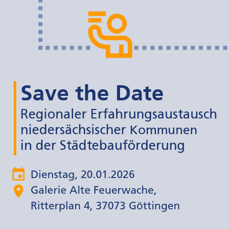 Am 20. Januar 2026 lädt die NBank zum regionalen Erfahrungsaustausch für niedersächsische Kommunen in der Städtebauförderung ein. Die Veranstaltung findet in Göttingen statt. mehr