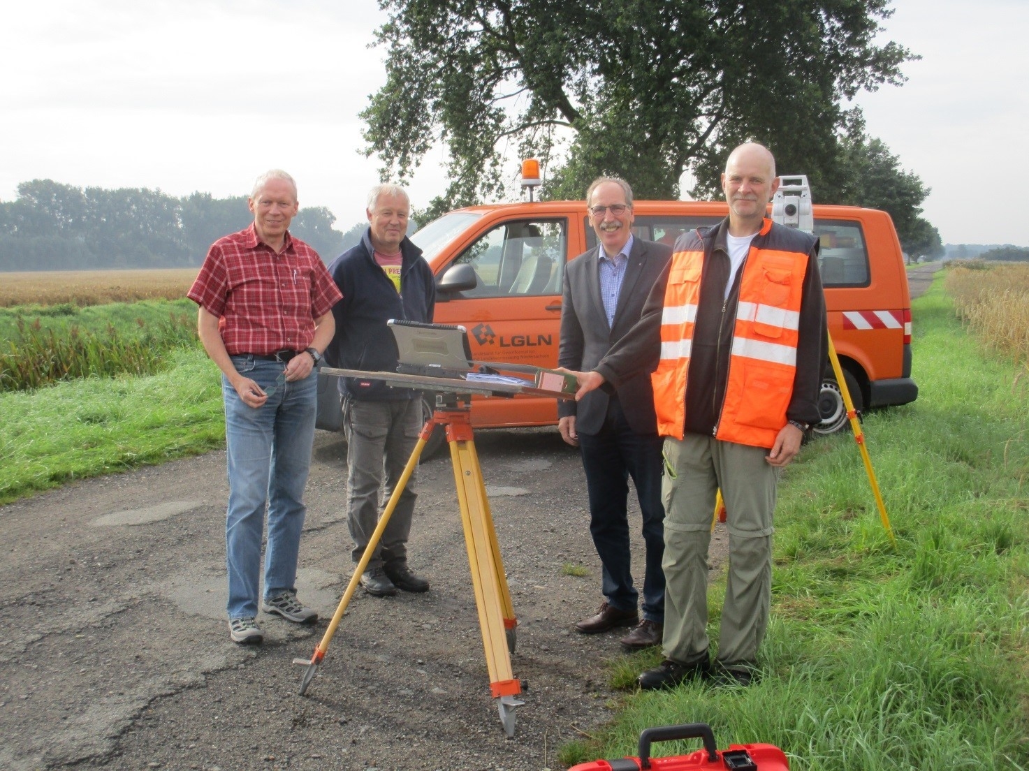 von rechts nach links: Gerd Lenz (LGLN, Katasteramt Syke) Dr. Ludwig Reeßing (Vorsitzender der Teilnehmergemeinschaft der Flurbereinigung Schwarmer Bruch) Jürgen Masemann (LGLN, Katasteramt Syke) Heiner Pleuß (ArL Leine-Weser, Geschäftsstelle Suling