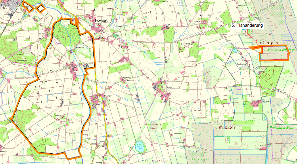 Gebietskarte einschließlich des Bereiches der 5. Planänderung