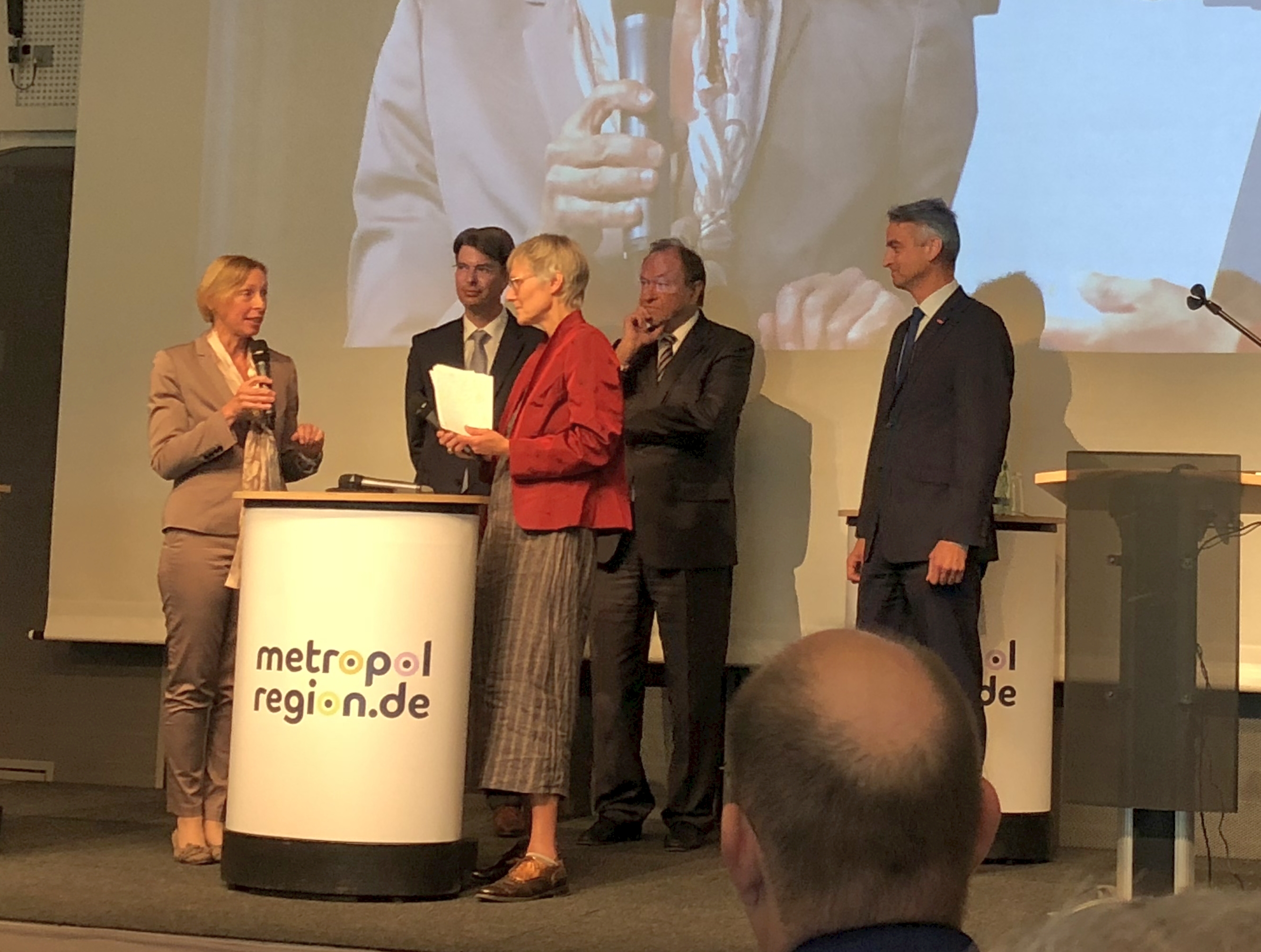 In einer Podiumsdiskussion diskutierten Dr. Ingo Meyer (Oberbürgermeister der Stadt Hildesheim), Prof. Dr. Thomas Hanschke (der Präsident der TU Clausthal), Peter Karst (Hauptgeschäftsführer der Handwerkskammer Hannover) und Heike Fliess (Landesbeauftragte für regionale Landesentwicklung Leine-Weser) die Herausforderungen der nächsten Jahre. Alle Beteiligten waren sich einig, dass die Nutzung der Chancen der Digitalisierung in allen Bereichen, gerade für die in weiten Teilen ländlich geprägte Metropolregion, entscheidend sein wird.