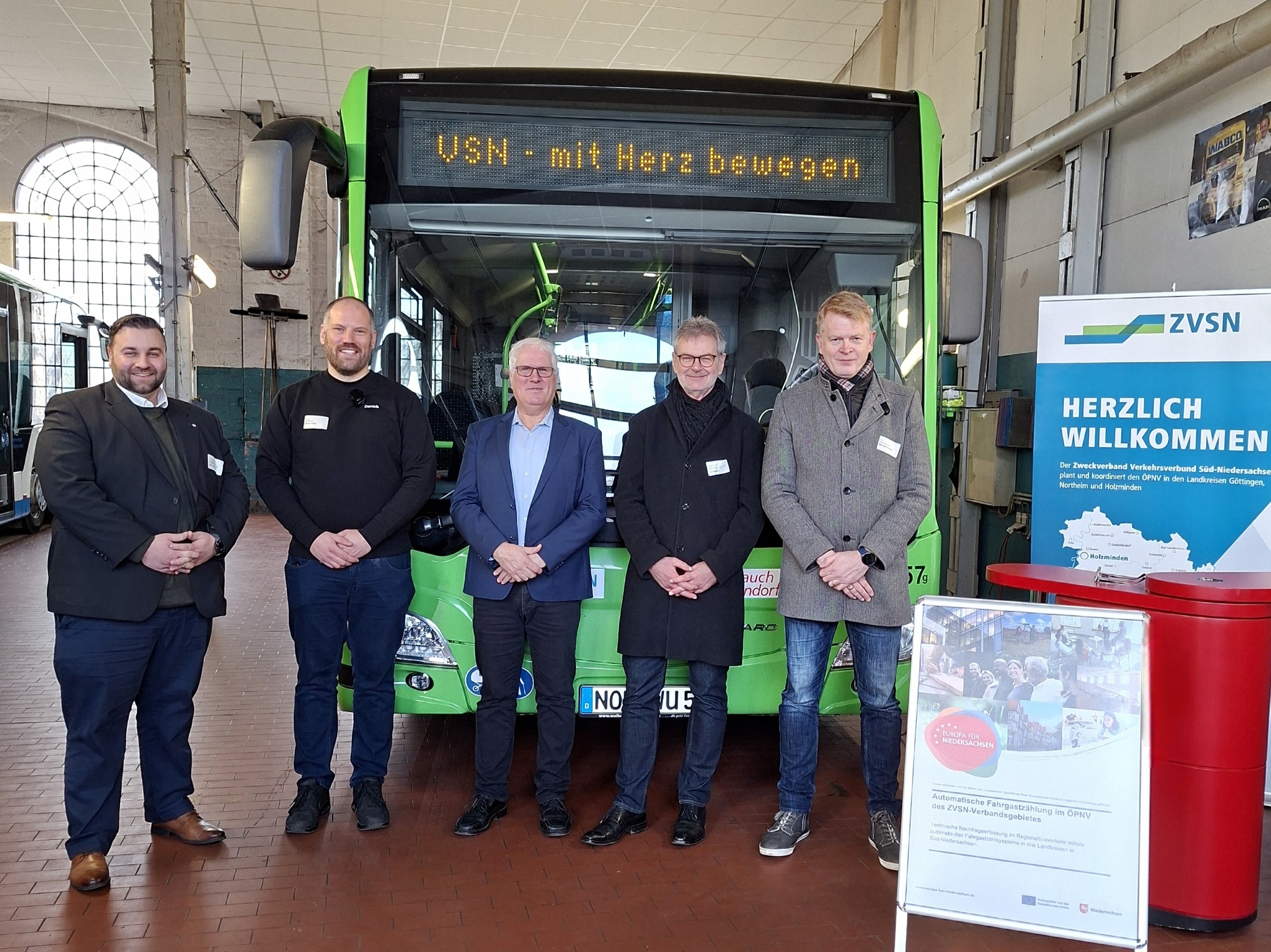 Der Zweckverband Verkehrsverbund Süd-Niedersachsen (ZVSN) hat auf dem Betriebshof der Regionalbus Braunschweig GmbH (RBB) in Holzminden den Start der technischen Einbauphase der Zählsensoren für die neuen automatischen Fahrgastzählsysteme (AFZS) vorgestellt. Im Rahmen des EU-Förderprogramms „Zukunftsregionen in Niedersachsen“ werden insgesamt 122 Busse in den Landkreisen Göttingen, Holzminden und Northeim mit moderner Zähltechnik ausgestattet. Das Land Niedersachsen unterstützt das Projekt mit rund 398.500 Euro.
