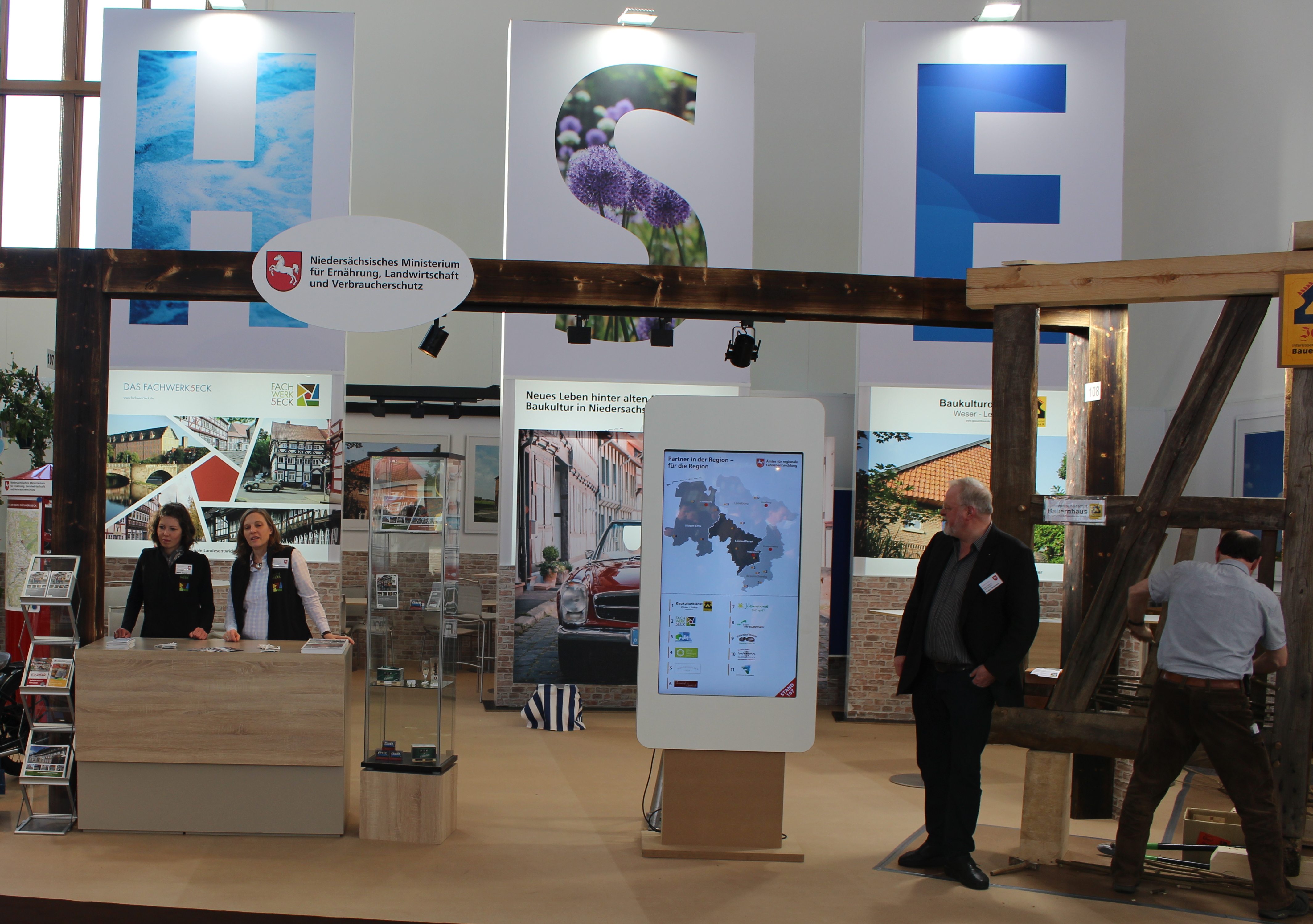 In der Niedersachsenhalle stellte sich das Amt für regionale Landesentwicklung Leine-Weser (ArL Leine-Weser) unter dem Motto „Neues Leben in alten Mauen - Baukultur in Niedersachsen“ auf dem Stand des Ministeriums für Ernährung, Landwirtschaft und Verbraucherschutz vor. „Unsere Teilnahme an der Grünen Woche war ein großer Erfolg für die Region Leine-Weser. Vertreter der Landkreise Schaumburg, Hameln-Pyrmont, Holzminden, Hildesheim und Diepholz nutzten die Möglichkeit interessierten Besucherinnen und Besuchern ihre vielfältige Baukultur und regionalen Delikatessen zu präsentieren“, resümiert Heike Fliess, Landesbeauftragte für den Amtsbezirk Leine-Weser. Gezeigt wurden Beispiele historischer Gebäude wie Klöster, Wassermühlen oder Salinengebäude, die heute anderweitig sinnvoll genutzt werden. Viele Mitmachaktionen, Spiele und jede Menge kleine handgemachte Köstlichkeiten, wie zum Beispiel Klosterkekse, machten das Motto lebendig.