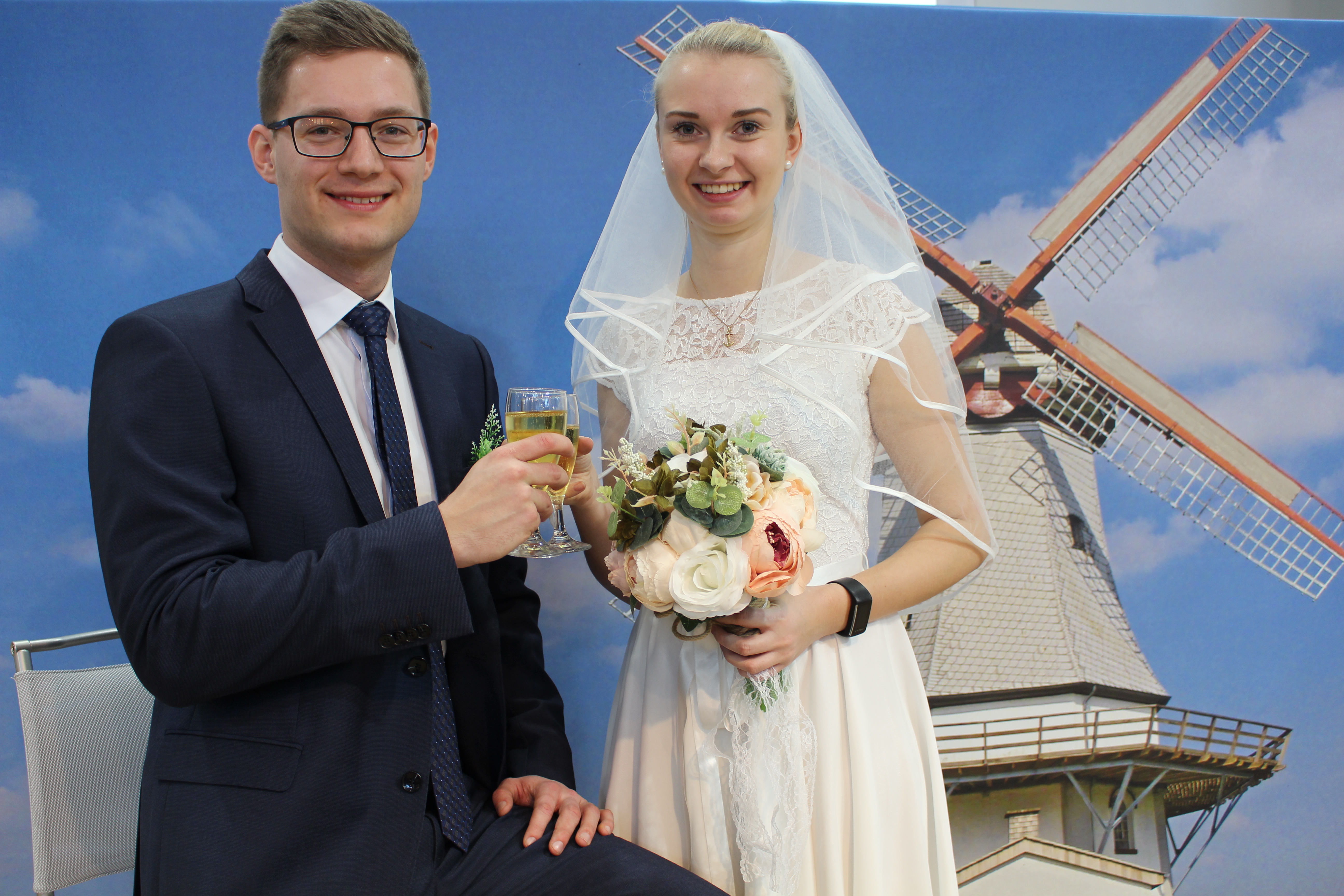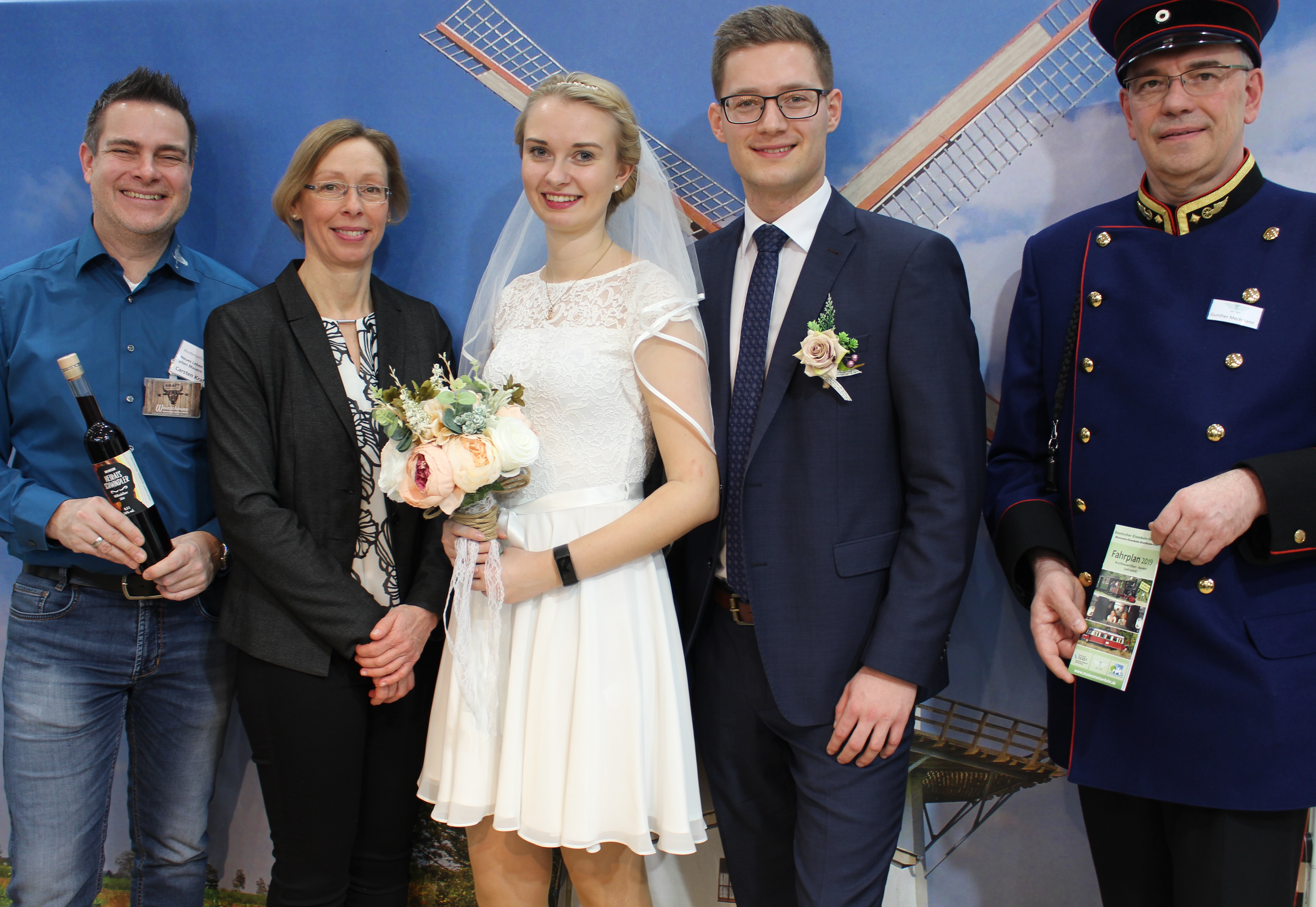 Niklas Reich und Sarah Verheyen präsentieren romantische und einzigartige Trauorte in der Samtgemeinde Bruchhausen-Vilsen. Neben drei Mühlen gibt es weitere historische Trauorte, wie den Salonwagen der Museums-Eisenbahn oder das Robberts Huus