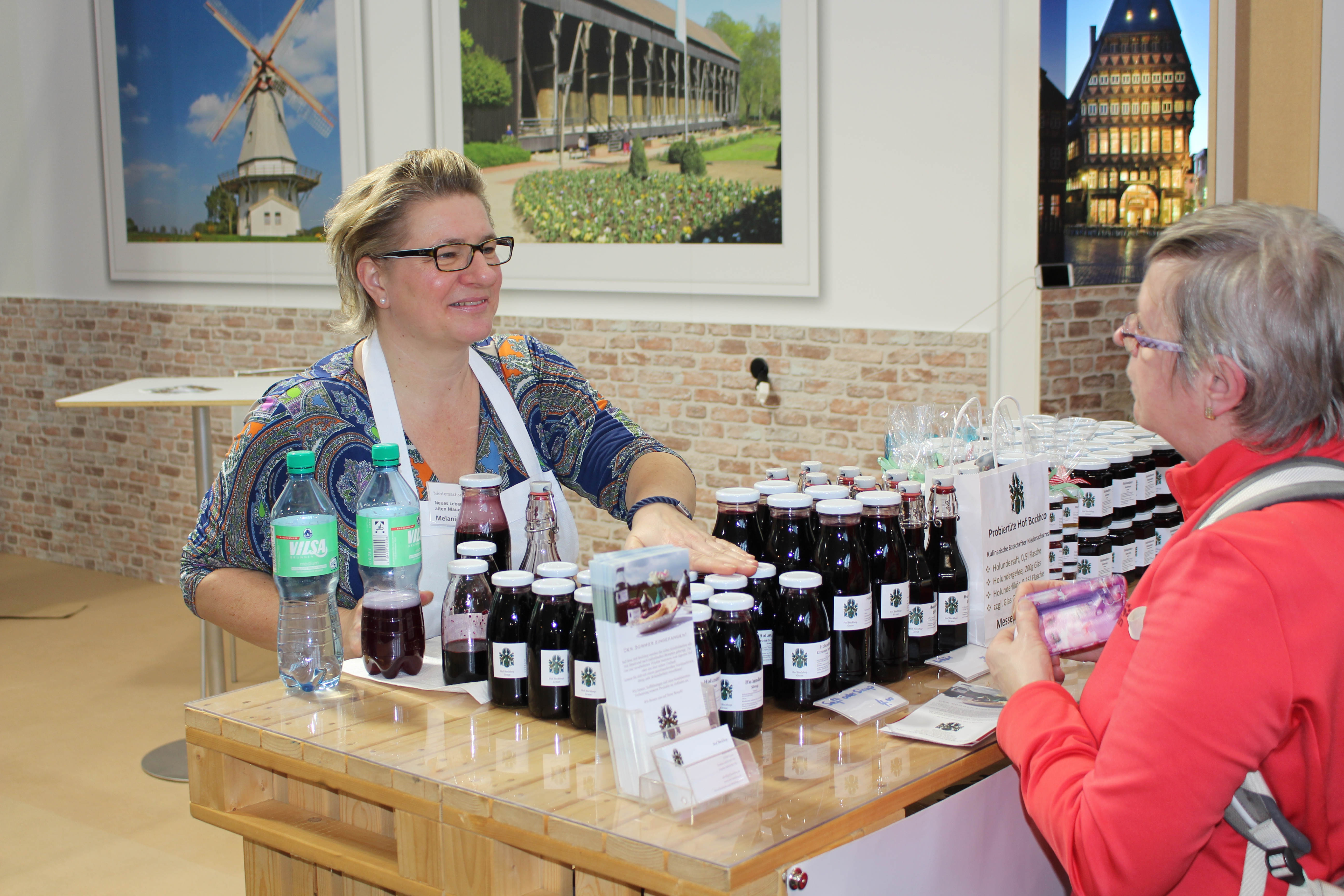 Melanie Bockhop präsentiert die Produkte vom Hof Bockhop aus Asendorf. Der angebaute Holunder wird zu Fruchtaufstrichen, Gelees, Saft, Sirup und Likör verarbeitet