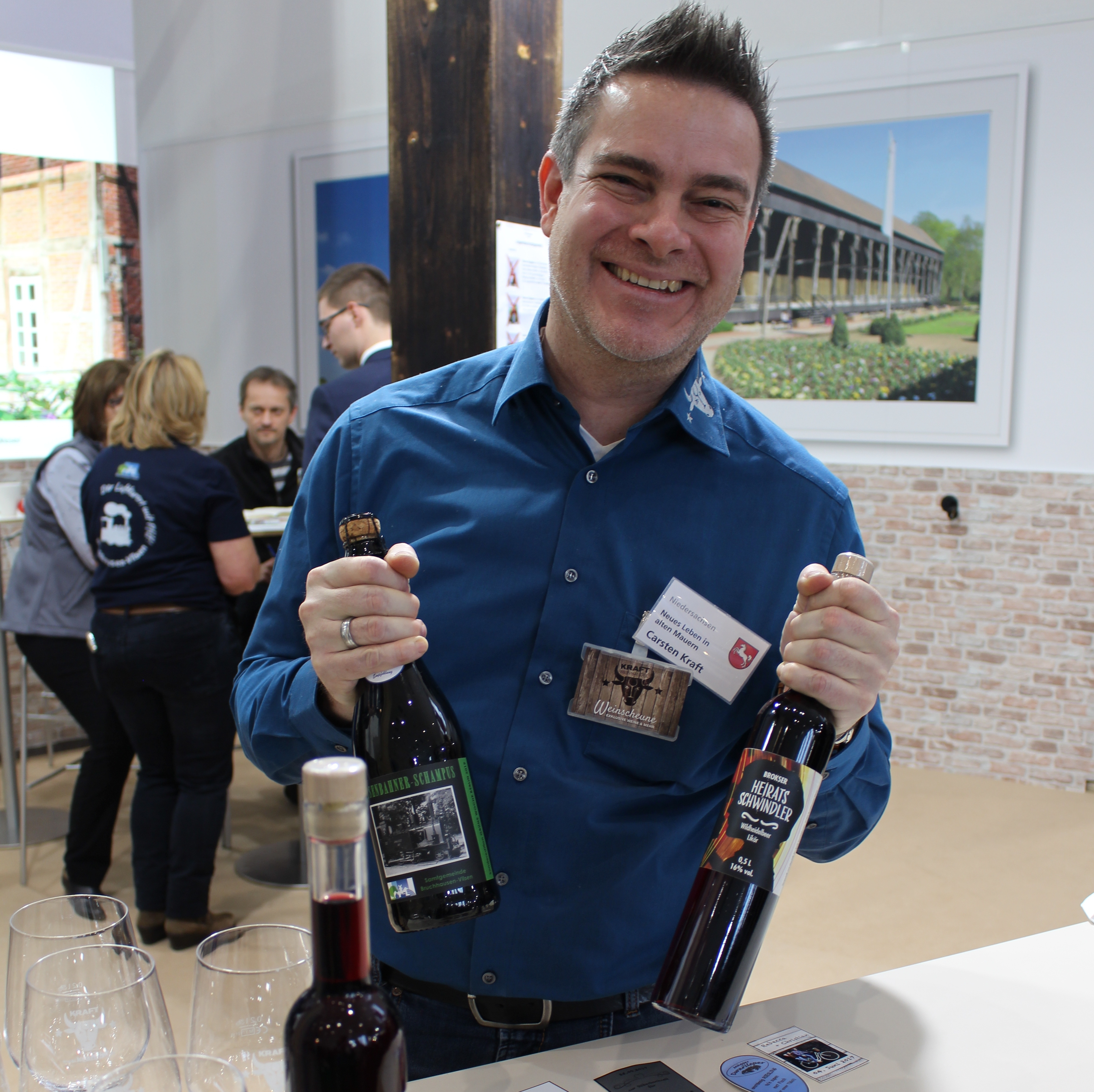 Bei Carsten Kraft, Inhaber des Weinhandels Kraft Handelskontor aus Bruchhhausen-Vilsen können Besucherinnen und Besucher exklusive Weine verkosten