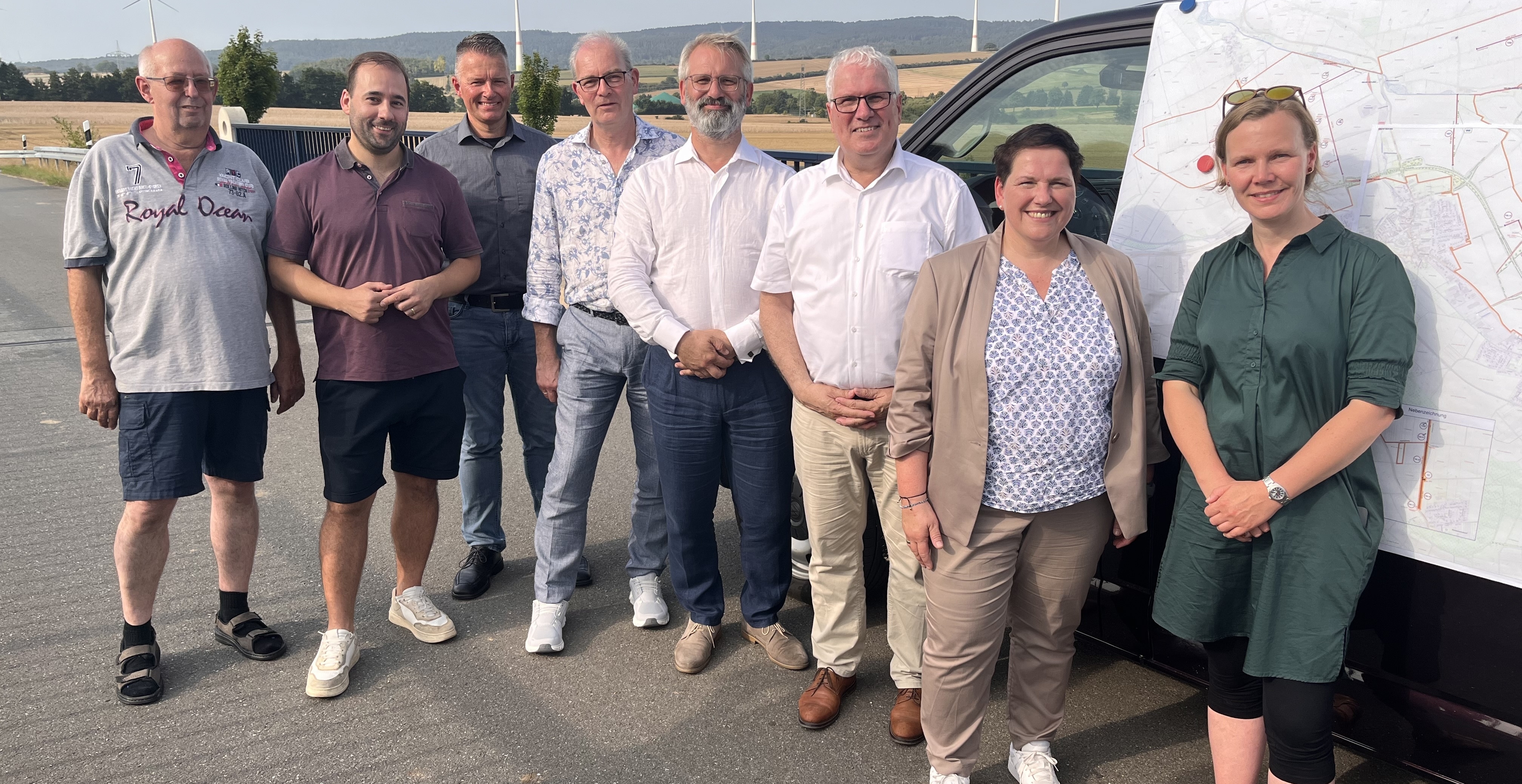 Letzter Halt der Tour war der Flecken Coppenbrügge, wo sich Ministerin Walter und Landesbeauftragter von Holtz in Begleitung von Johannes Schraps, Bundestagsabgeordneter (SPD), und Britta Kellermann, Landtagsabgeordnete (Bündnis 90/Die Grünen), über die Planungen zur Ortsumgehung informierten. Begrüßt wurden sie von Bürgermeister Thomas Küllig und Timo Quander, Präsident der Landesbehörde für Straßenbau und Verkehr. Die Ortsumgehung ist ein Projekt aus der Flurbereinigung, das nicht nur die Verkehrssituation verbessern, sondern auch die Lebensqualität im Ortskern steigern soll, bei gleichzeitiger Stärkung des ländlichen Wegenetzes und Flächenneuordnung durch das Verfahren. Während Karsten Bödecker vom Amt für regionale Landesentwicklung Leine-Weser über das Flurbereinigungsverfahren informierte, erläuterte Markus Brockmann, Leiter des Geschäftsbereichs Hameln der Landesbehörde für Straßenbau und Verkehr, das Bauvorhaben der sechs Kilometer langen Ortsumgehung Coppenbrügge-Marienau. Die Besucher erfuhren so, wie komplexe Infrastrukturmaßnahmen mit Bodenordnung, landwirtschaftlichen Belangen und ökologischen Anforderungen in Einklang gebracht werden.