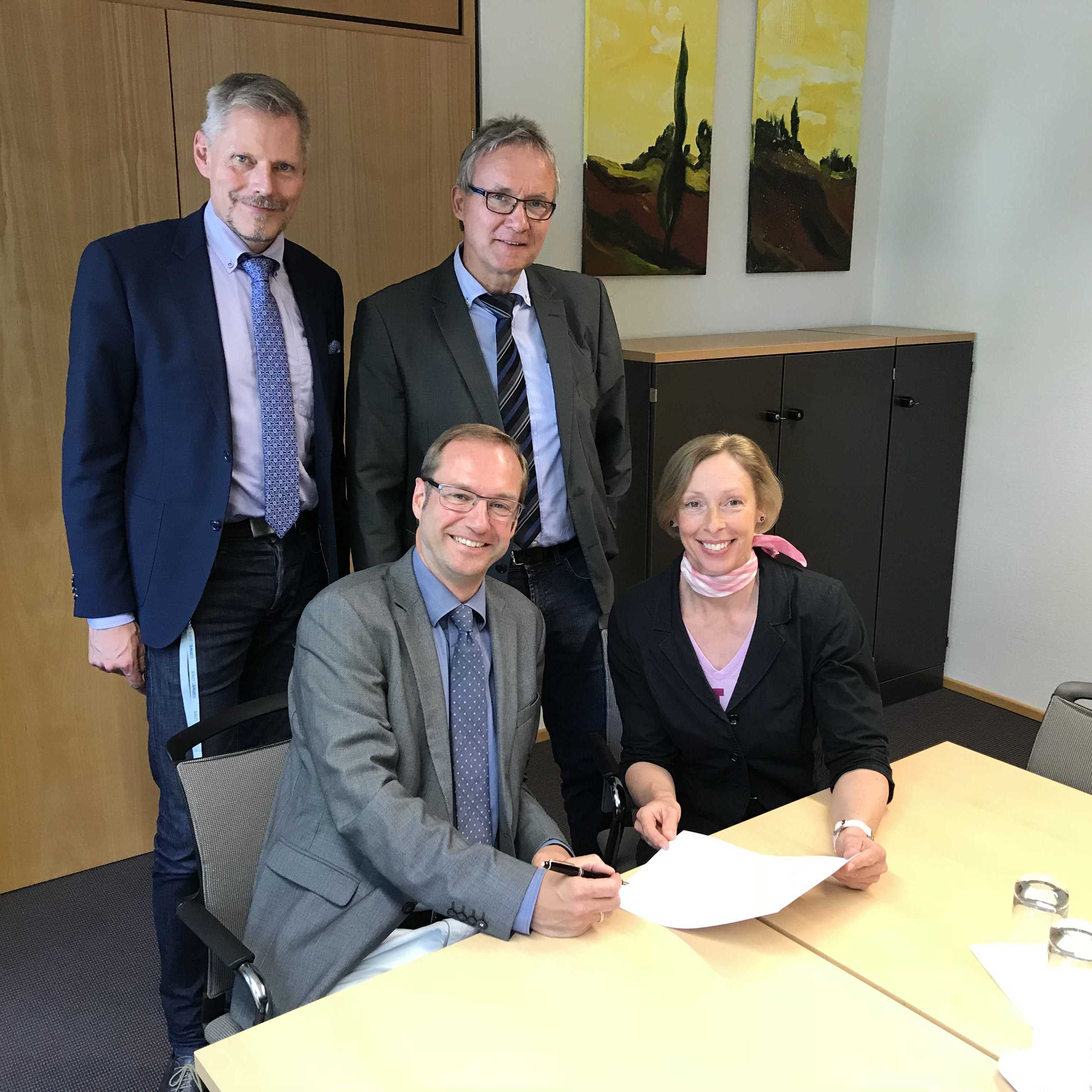 Oben v.l.n.r.: Herr Jordt und Andreas Kutscher (Geschäftsstellenleiter NLG mbH Hannover); unten v.l.n.r.: Christopher Toben (Geschäftsführer NLG mbH) und Heike Fliess (Landesbeauftragte Amt für regionale Landesentwicklung).