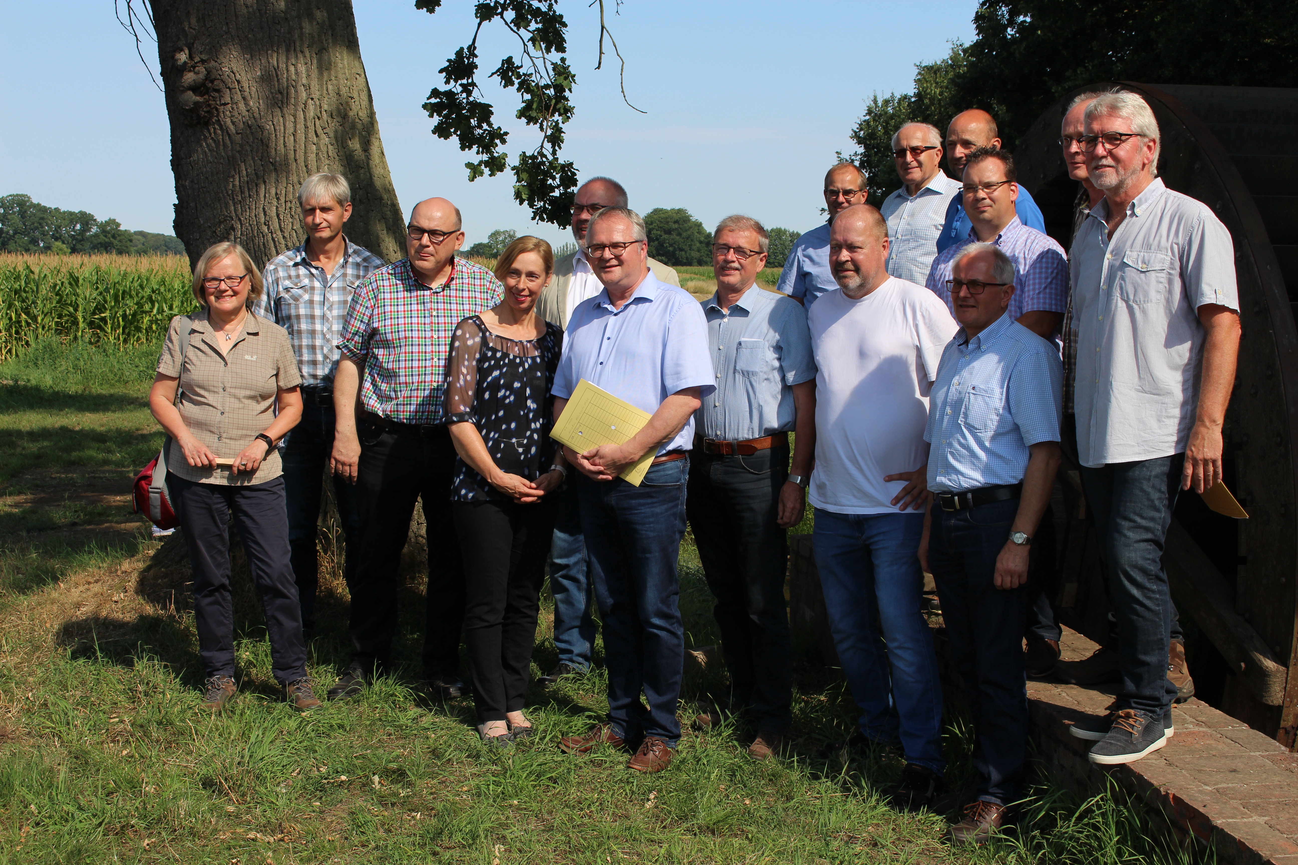 Vordere Reihe v.l.n.r.: Martina Hücker (LK Nienburg), Hermann Morische (Kreisverband für Wasserwirtschaft); Christian Schönfelder (ArL Leine-Weser), Heike Fliess (Landesbeauftragte ArL Leine-Weser), Detlef Meyer (SGB Hoya), Friedrich Könemann (Kreisverband für Wasserwirtschaft), Klaus Rode (Eigentümer), Karl-Heinz Schütte (VTG Sulingen)