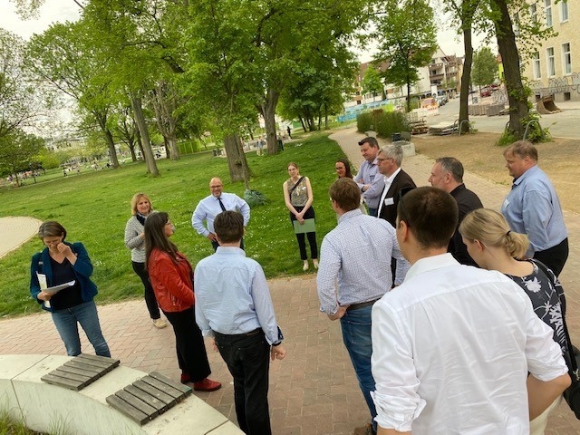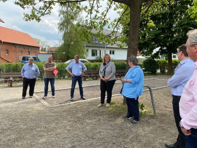 Nach einem gemeinsamen Mittagessen im Waldgasthaus „Zum Kuckuck“ in Harsum, ging die Fahrt weiter zum nächsten Projekt aus der Dorfentwicklung im Ortsteil Borsum. Dort werden verschiedene Maßnahmen wie der Sonoytaplatz und die Martinstraße sowie das Jugendheim saniert. Mit dem Besuch der Freien Werkstatt, ein Projekt für benachteiligte Jugendliche aus der Förderrichtlinie „Soziale Innovation“ und der Besichtigung der Oststadt mit Begehung der Einzelmaßnahmen „Spielplatz Steingrube“ und „Multifunktionsfläche an der Schule Scharnhorstgymnasium“, ein Projekt aus der Städtebauförderung, endete die Tour am Abend in Hildesheim.
