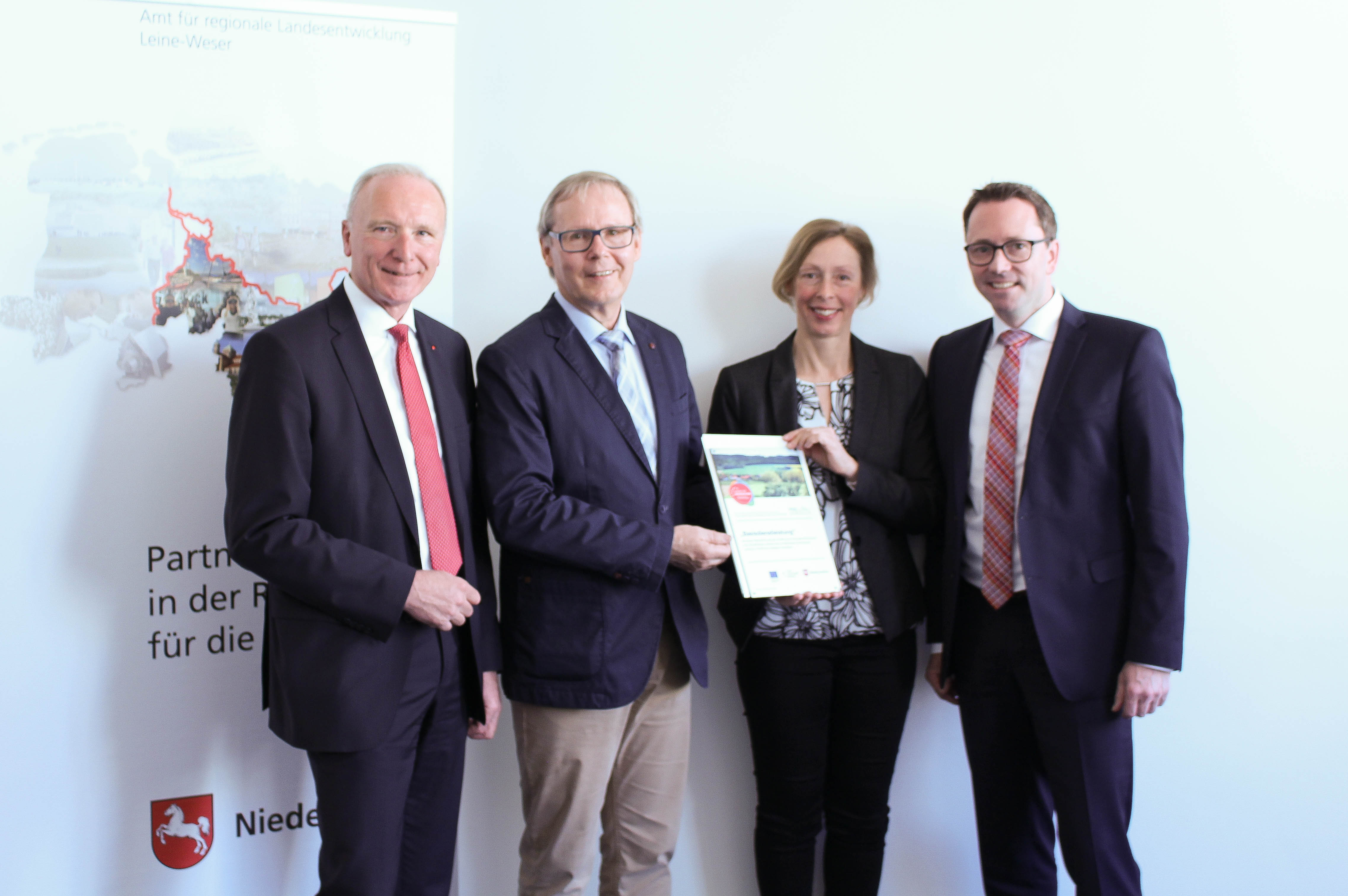Hildesheim. – Mit dem Projekt zur Sanierung des Freibades in Freden nimmt das Land Niedersachsen die drei Aspekte der Nachhaltigkeit – sozial, ökologisch, ökonomisch - in der Gemeinde Freden in den Blick. Am Montag, den 01. April 2019 überreichte Heike Fliess, Landesbeauftragte für den Amtsbezirk Leine-Weser, einen Förderbescheid in Höhe von rund 500.000 Euro an Wolfgang Heimann, Bürgermeister der Gemeinde Freden.
