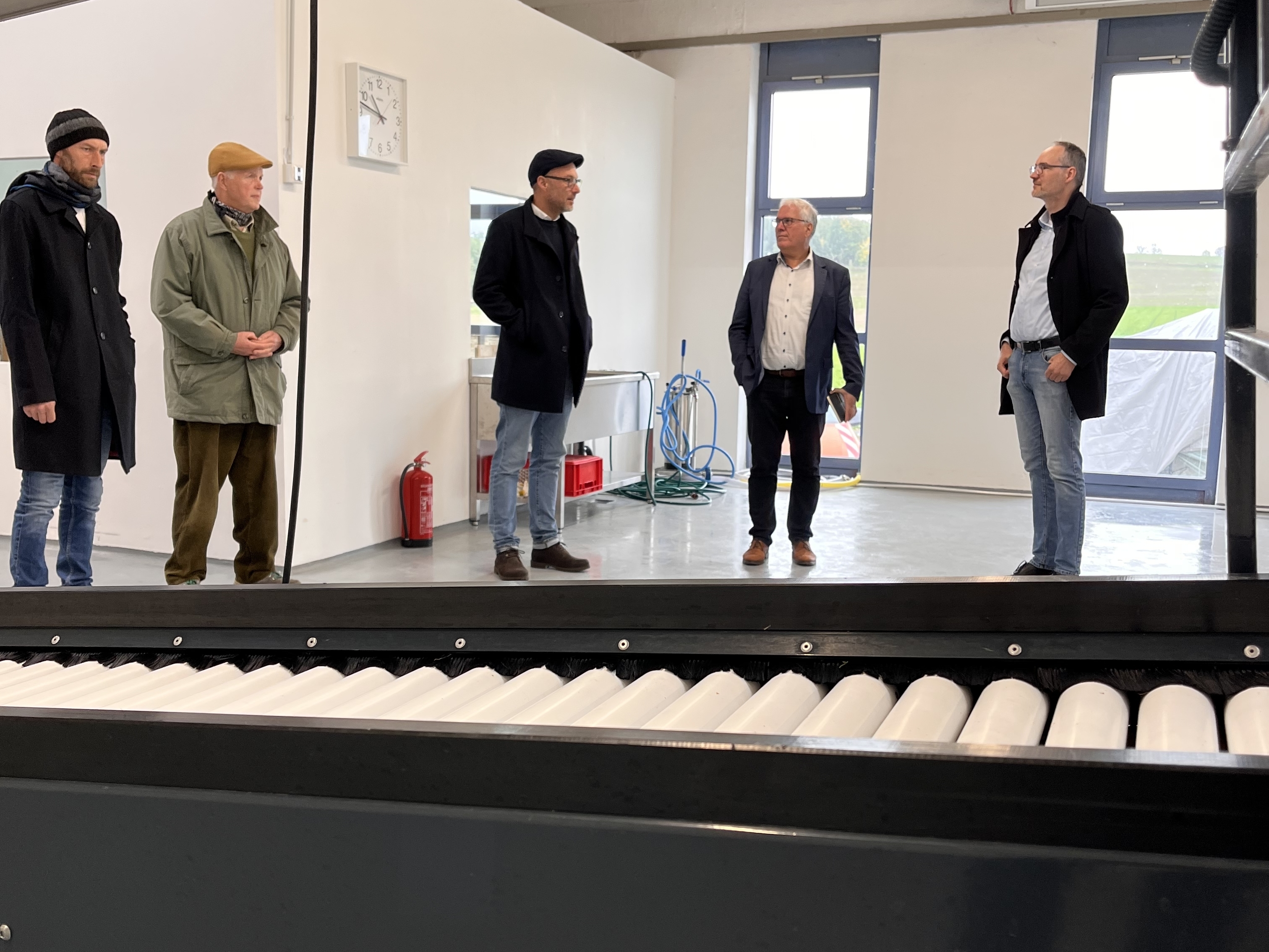 Im Anschluss führte die Tour den Landesbeauftragten nach Rinteln-Exten zur Obstwiesenland gGmbH, wo er die neue Mosterei besichtigte, die im September ihren Betrieb aufgenommen hat. Sie ist ein Leuchtturmprojekt für nachhaltige Regionalentwicklung und den Erhalt der Streuobstwiesen im Weserbergland. Das Projekt wird mit Fördermitteln von rund 73.000 Euro aus der ZILE-Richtlinie unterstützt.
