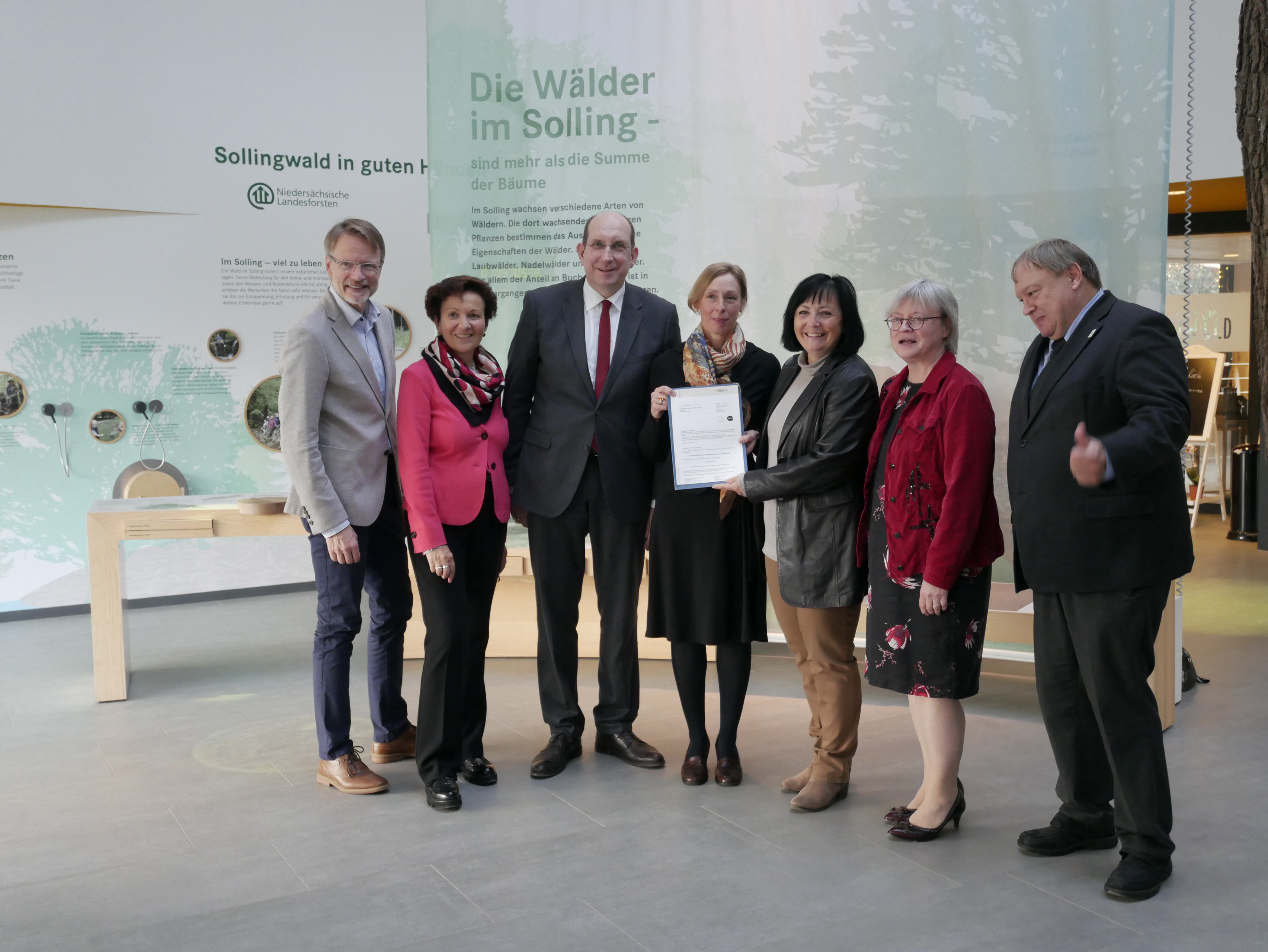 Bei der Übergabe des Bewilligungsbescheides der NBank durch Frau Fliess, Landesbeauftragte vom Amt für regionale Landesentwicklung (ArL) Leine-Weser und Herrn Wunderling-Weilbier vom ArL Braunschweig an die Vorsitzende des Naturpark Solling-Vogler Frau Landrätin Klinkert-Kittel vom Landkreis Northeim, stellt diese die Bedeutung dieser Förderung für den Tourismus in der Region heraus. „Mit diesem Projekt gelingt uns ein Quantensprung bei den Wanderangeboten in der Solling-Vogler-Region und wir können den Besuchern die Highlights unserer Naturlandschaft, bzw. des Naturparks attraktiv präsentieren.“