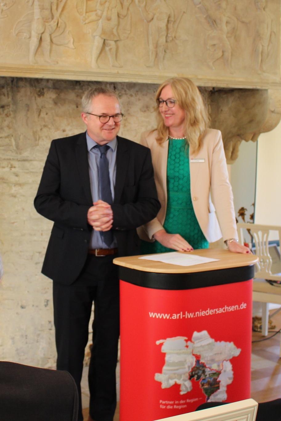 Samtgemeindebürgermeister Detlef Meyer (SG Grafschaft Hoya) und Ursula Nietfeld ArL LW