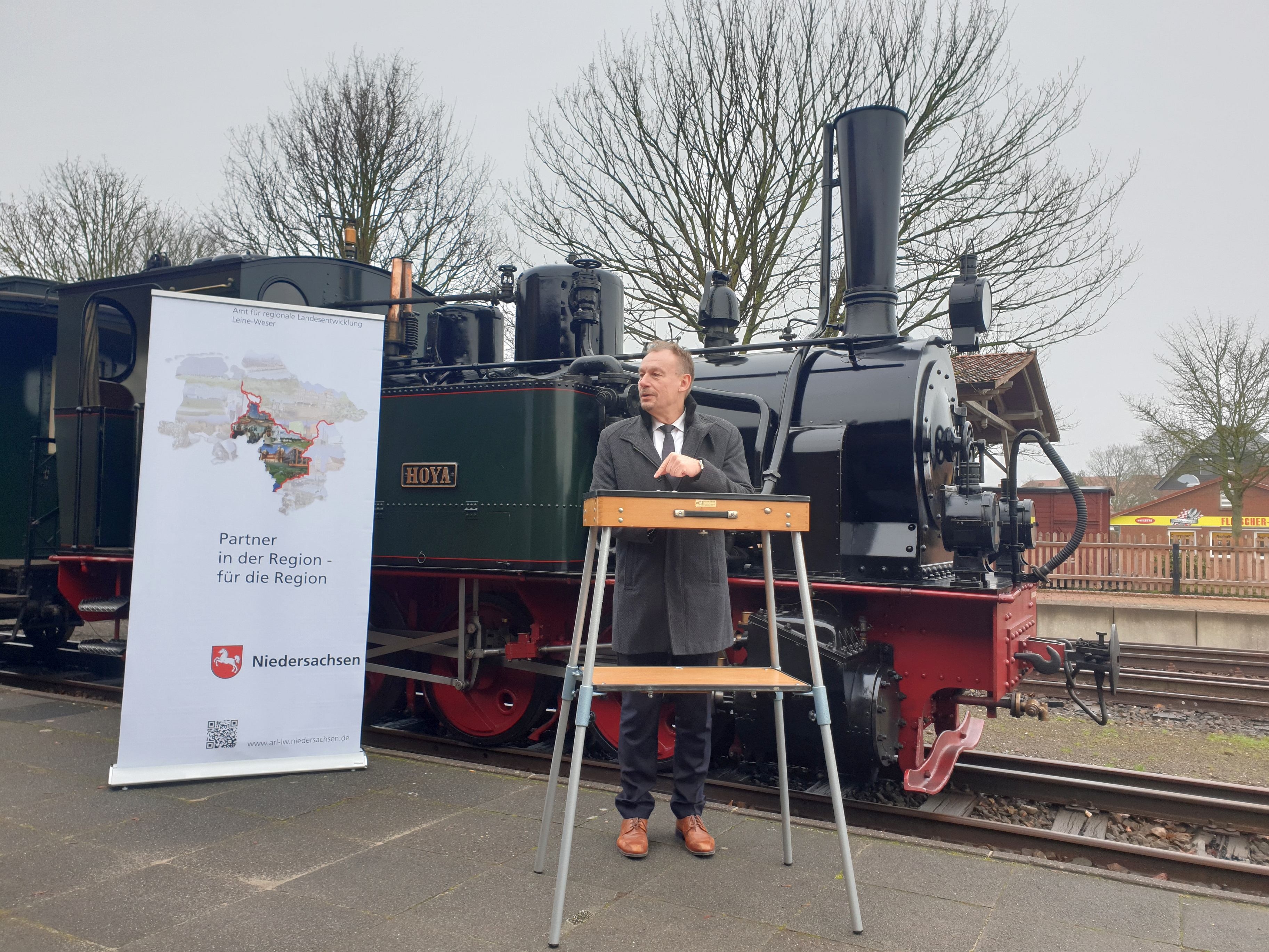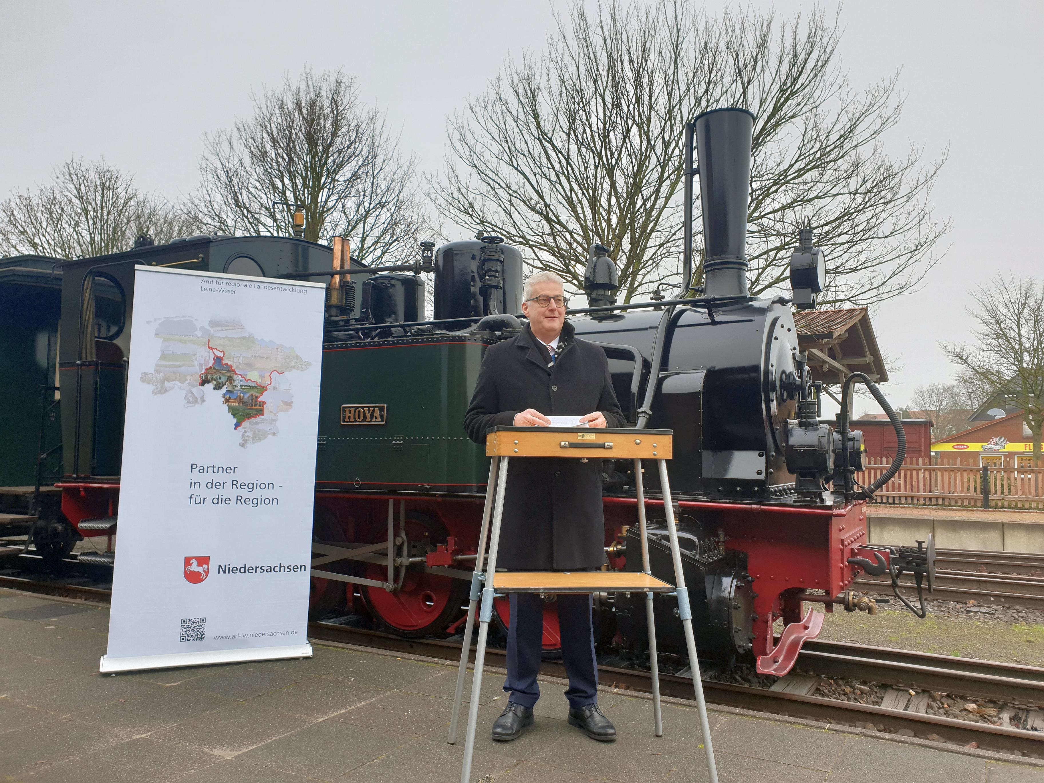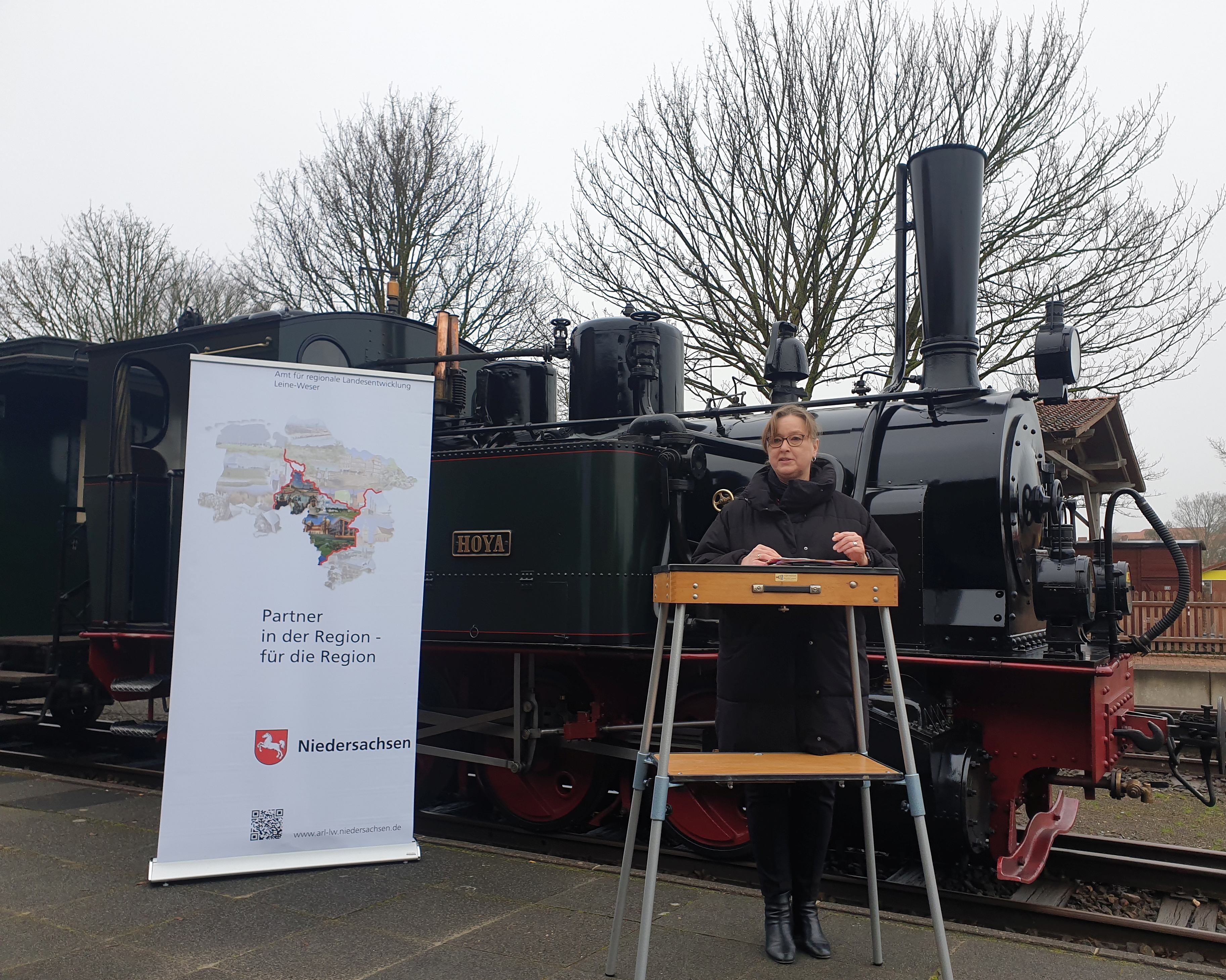Landesbeauftragte Frauke Patzke, ArL Leine-Weser und Eckhard Thurau, Vorstandsvorsitzender Stiftung Kleinbahn-Museum Bruchhausen-Vilsen