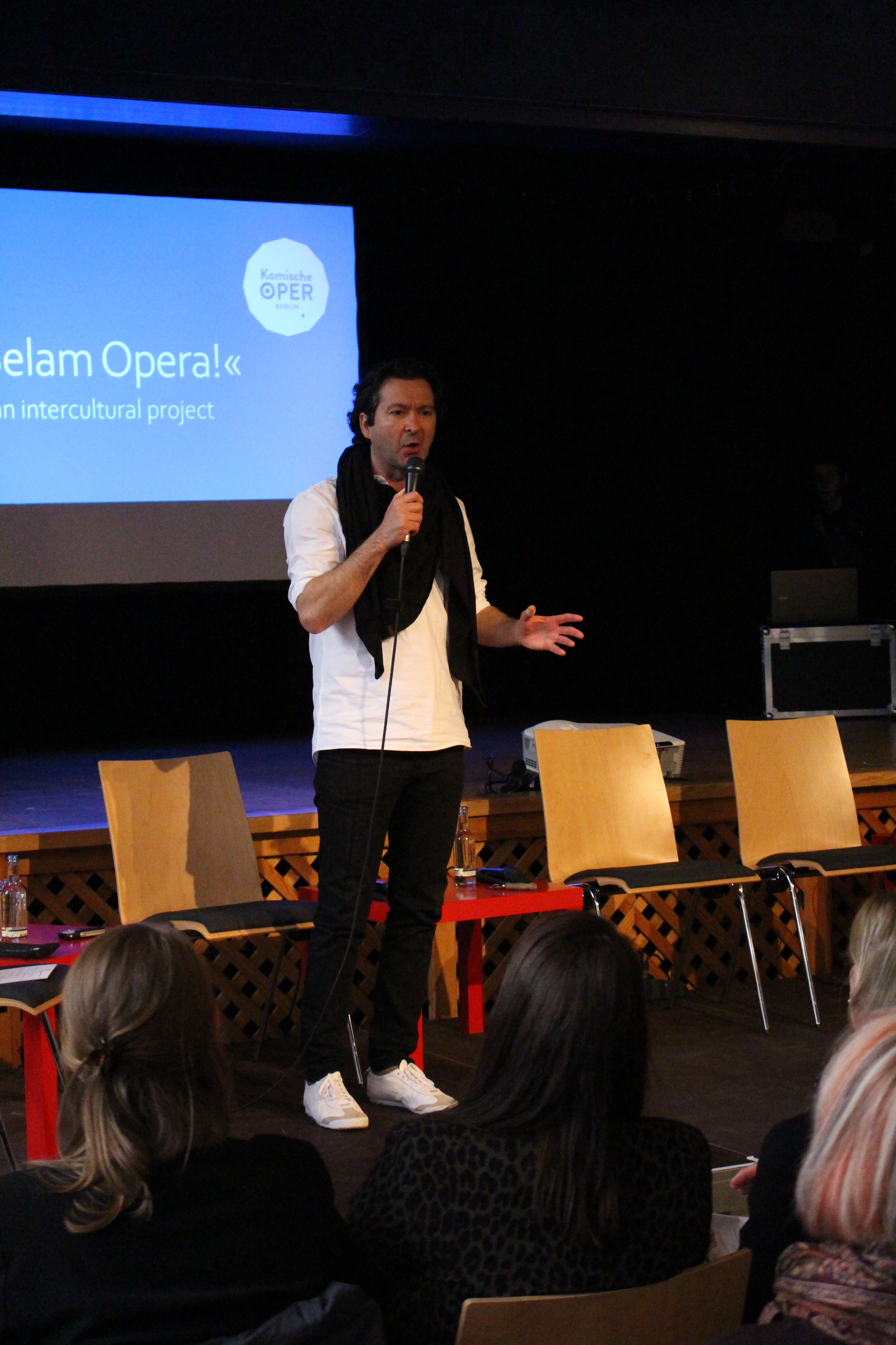 Auf besonderes Interesse stieß der Beitrag von Mustafa Akca, von der Komischen Oper in Berlin. Er berichtete auf unterhaltsame Weise über seine Erfahrungen als erster Mitarbeiter mit türkischen Migrationshintergrund in dieser Einrichtung deutscher Hochkultur. Klar wurde dabei, dass gut gemeint nicht immer auch gut gemacht bedeutet. Dies machte er etwa an der klischeehaften Darstellung von Personen mit Migrationshintergrund, die mit „Kanakensprache“ in eine Kinderoper eingebaut wurden, deutlich. Als ein Integrationshemmnis machte er aus, dass Personen mit Migrationshintergrund, sich häufig für Vorgänge im vermeintlichen Heimatland rechtfertigen müssten, obwohl sie dort nie gelebt hätten. Besonders lobte Herr Akca, dass in Niedersachsen in Sachen Integration entschlossen angepackt und Dinge nicht zerredet würden, wir in seiner Heimatstadt Berlin.