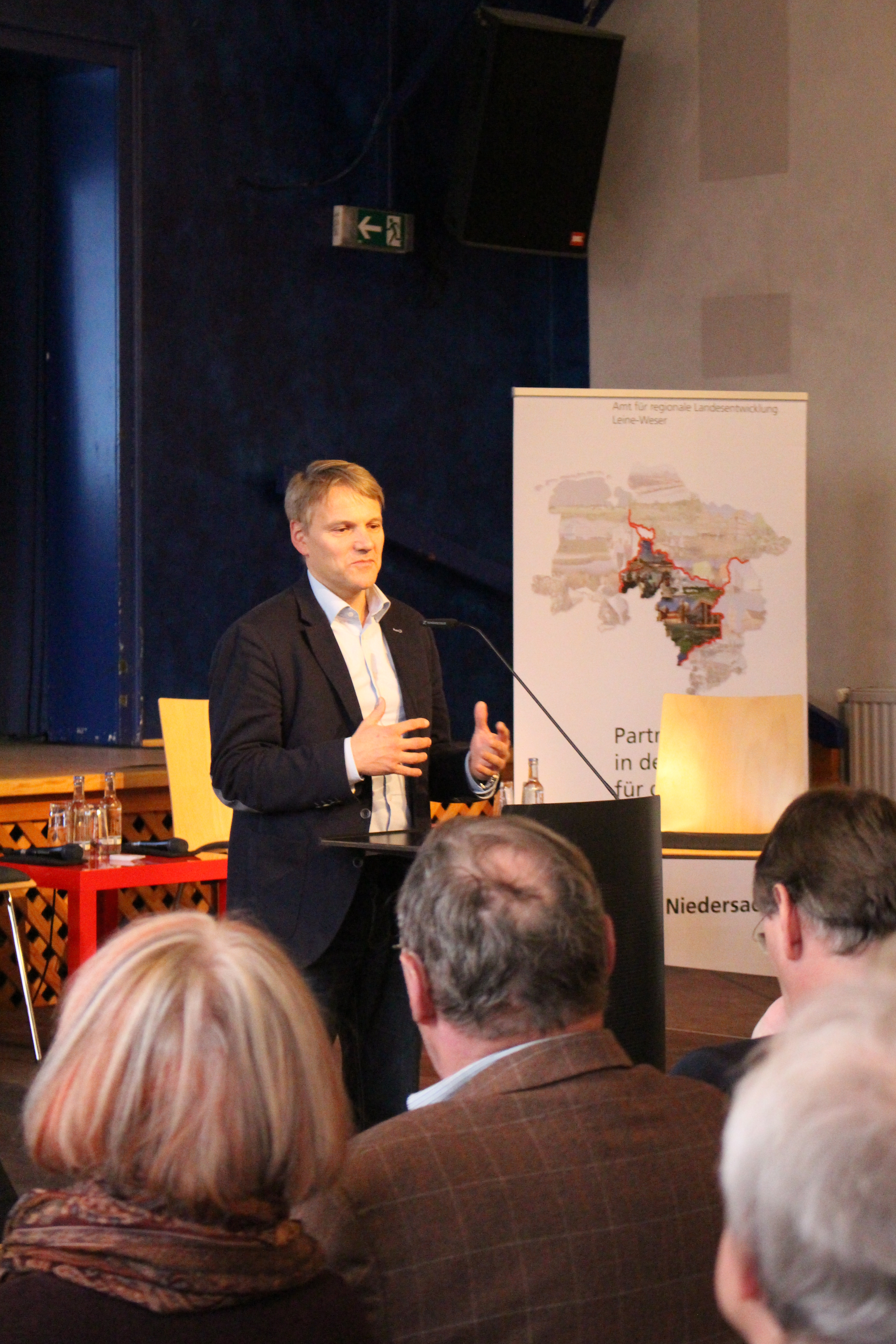 Oliver Theiß, Bürgermeister der Stadt Stadthagen stellte in seinem Grußwort die gegenwärtige Situation der Integration in Stadthagen vor und freute sich, eine Veranstaltung des Bündnisses „Niedersachsen packt an“ in Stadthagen zu begrüßen.
