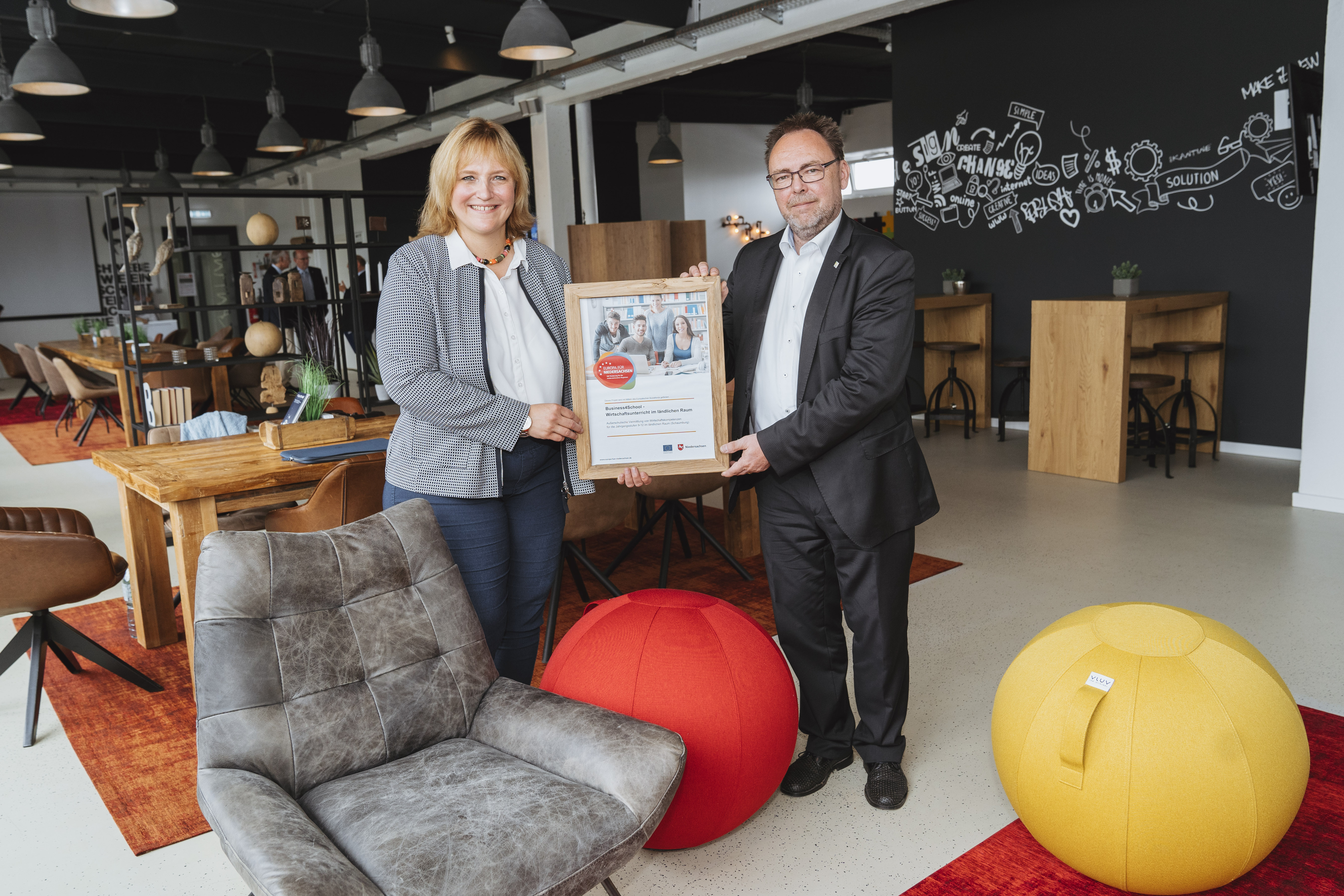 „Business4School zählt zu den Vorzeigeprojekten in unserem Regionalen Fachkräftebündnis, da es einen direkten Dialog zwischen Unternehmen und Schülerinnen und Schülern ermöglicht, und damit die gegenseitige Unkenntnis über Potentiale und Chancen überwindet. Ein toller Ansatz, den die Weserbergland AG mit einem an den ländlichen Raum angepassten Konzept verfolgt“, sagte Dinah Stollwerck-Bauer im Rahmen der Bescheidübergabe.