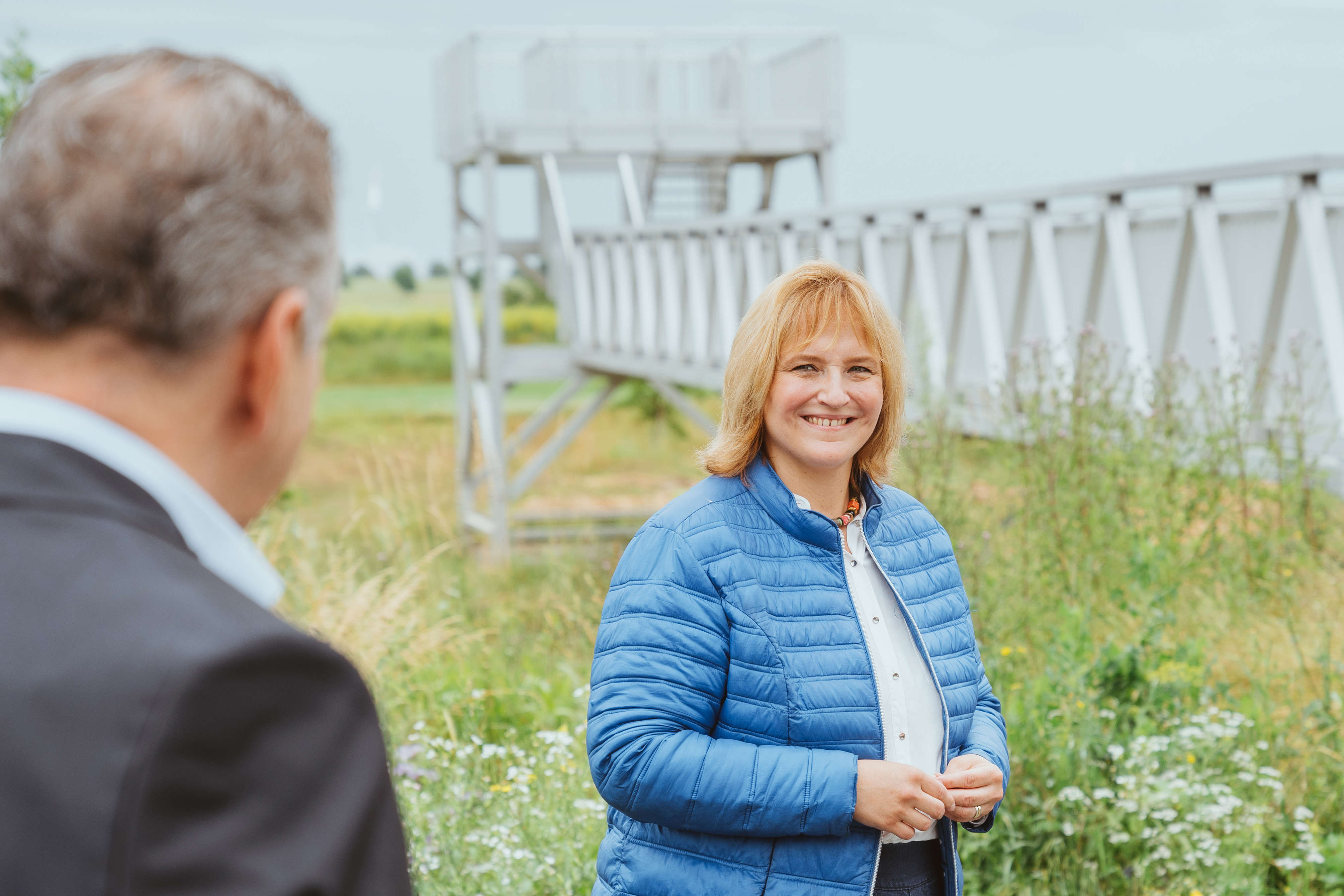 Weiter ging es danach zum Bruchgraben in Algermissen, der im Zuge einer Flurbereinigung renaturiert wurde. "Flurbereinigungen sind ganz wichtig, auch wenn sie oft etwas dauern. Das ist nicht schlecht, denn sie dauern, weil man die Beteiligten mit einbeziehen möchte", erläuterte Stollwerck-Bauer vor Ort. Dass die Zusammenarbeit bei diesem Projekt besonders gut funktionierte, bestätigte auch Bernd Galland: "Alle Beteiligten haben an einem Strang gezogen und in dieselbe Richtung." Er ist erster Vorsitzender der Paul-Feindt-Stiftung, die das Gebiet schützt. Gefördert hat das ArL Leine-Weser auch eine Aussichtsplattform, die vor zwei Jahren dort gebaut wurde und viele Ausflügler anzieht, sowie eine schmale Brücke, die demnächst erneuert wird. "Die Gemeinden Harsum, Algermissen, das Land Niedersachsen und der Bruchgraben haben Zukunft", sagte der Landtagsabgeordnete Markus Brinkmann bei dem Ortstermin. Das hörten die anwesenden Thomas Schmidt, stellv. Bürgermeister Gemeinde Algermissen, und Marcel Litfin, Bürgermeister Gemeinde Harsum, natürlich gerne.