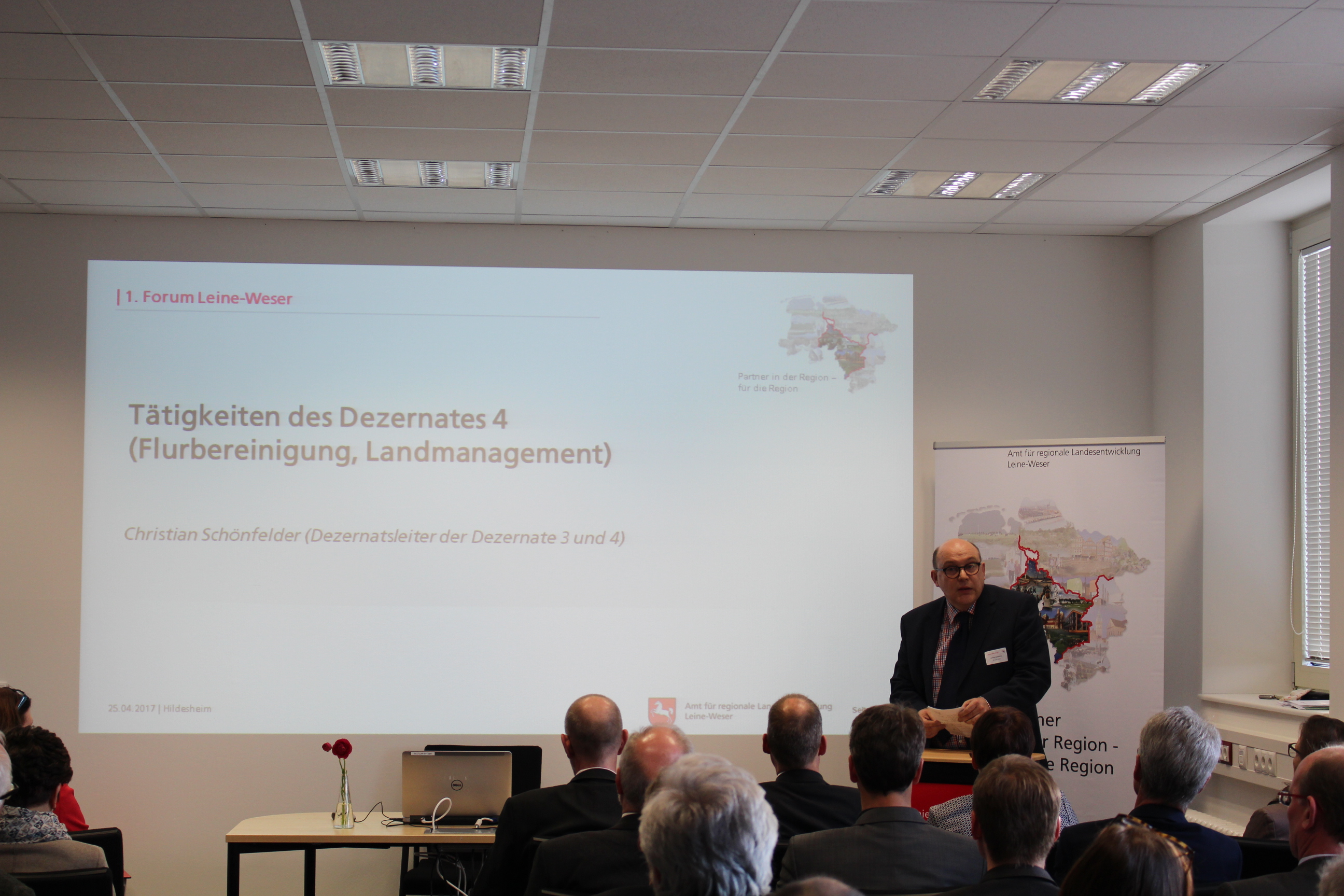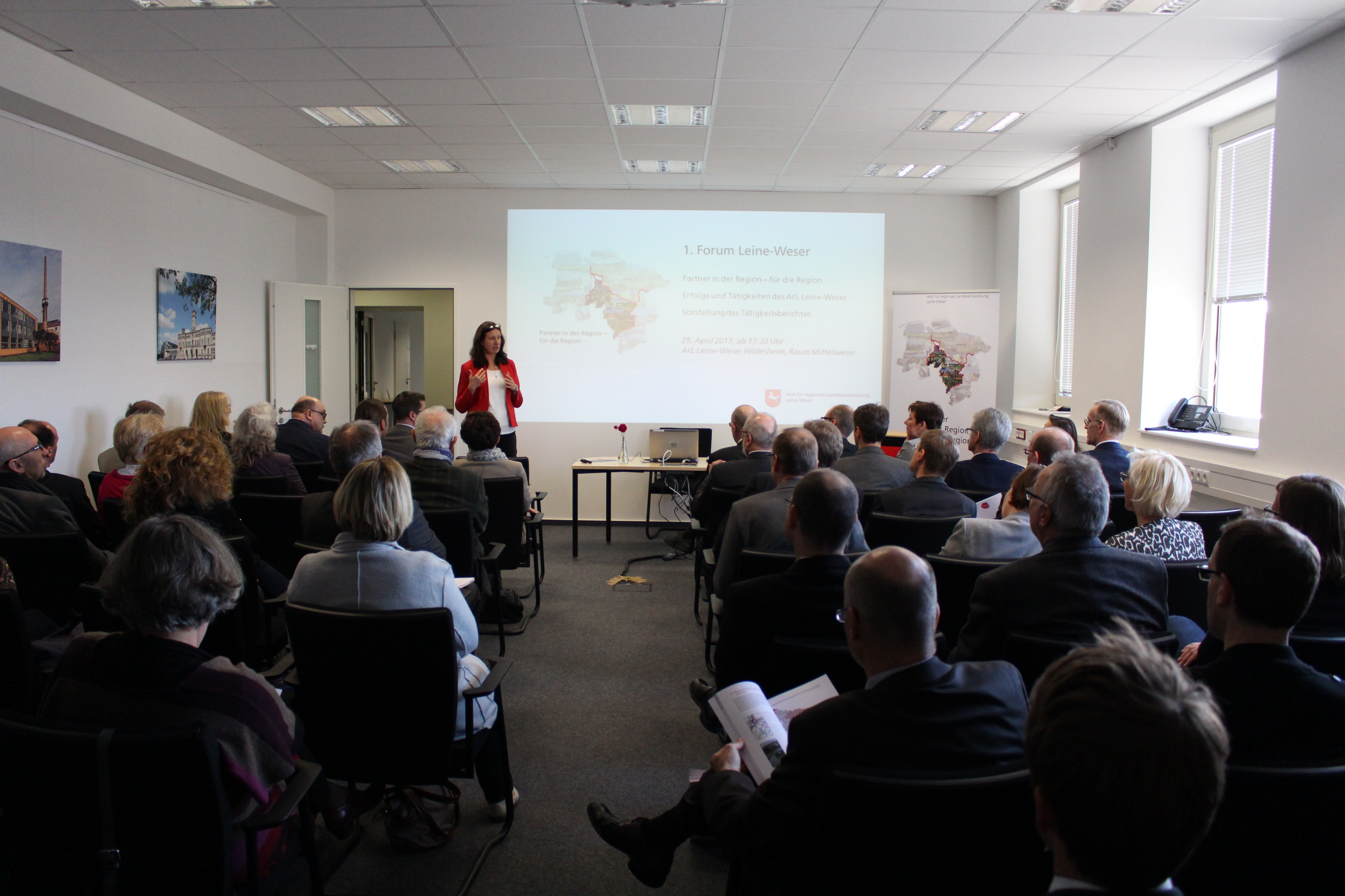 Das Amt für regionale Landesentwicklung Leine-Weser zog drei Jahre nach seiner Gründung eine erste positive Bilanz beim 1. Forum Leine-Weser am 25.04.2017. Vor gut 70 interessierten Akteuren aus der Region wurden im Rahmen der Vorstellung des Tätigkeitsberichtes erfolgreiche und aktuelle Projekte in den Besprechungsräumen des ArL Leine-Weser in Hildesheim vorgestellt. Auch nach drei Jahren der gemeinsamen Arbeit konnten die Gäste neue Kooperations- und Fördermöglichkeiten mit nach Hause nehmen und ihre persönlichen Kontakte weiter ausbauen.