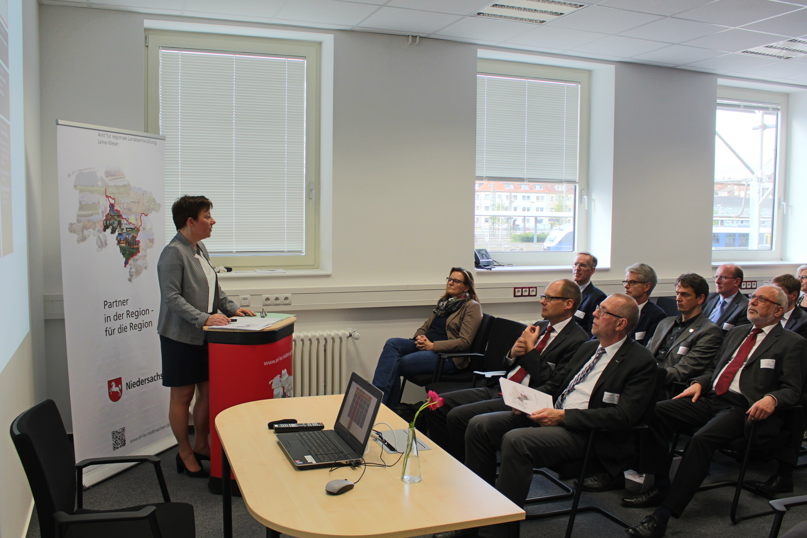 Vom Standort in Sulingen stellte die dortige Dezernatsteilleiterin des Dezernates 3.2 (Strukturförderung ländlicher Räume), Ursula Nietfeld, die Strukturförderung von ländlichen Räumen vor. Neben den Förderinstrumenten ILE, LEADER und ZILE stehen dort insbesondere Maßnahmen zur Dorferneuerung und Tourismusförderung zur Verfügung.