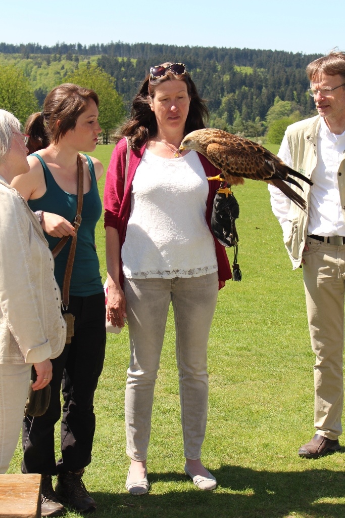 Führungen von einer zertifizierten Waldpädagogin wurden angeboten. Des weiteren gab es eine Flugvorführung der Falknerei.