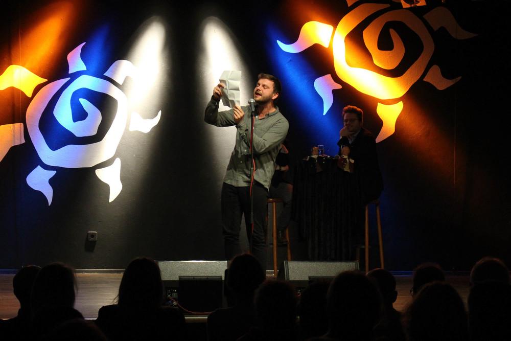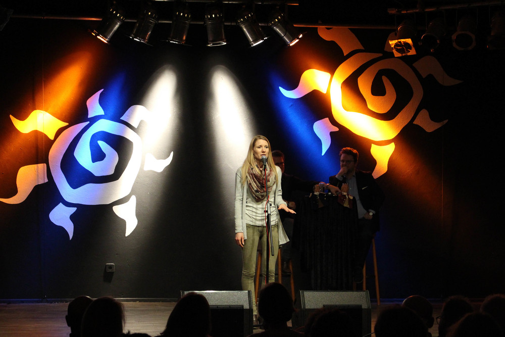 In zwei Durchgängen präsentierten die Teilnehmerinnen und Teilnehmer ihre Texte dem Publikum. Für den ersten Durchgang, der Pflicht, war vorgegeben, dass den Texten das Thema „zivilgesellschaftliches Engagement“ zugrunde liegen sollte. Im zweiten Durchgang, der als Kür fungierte, konnten die Poetinnen und Poeten thematisch frei agieren. Der Slamer Florian Stein begeisterte das Publikum mit einem kommentierten Sprintrennen zwischen zwei Personen mit den unterschiedlichsten Lebensläufen. Tanja Schwarz und Gerrit Wilanek berichteten in ihren Texten von einem Gespräch mit einem Freund, der aktiv im Bereich der Seenotrettung im Mittelmeer geholfen hat. Nach zwei Präsentationsdurchgängen entschieden die Anwesenden mit ihrer Abstimmung, dass Florian Stein Sieger der Herzen an diesem Abend sein soll.