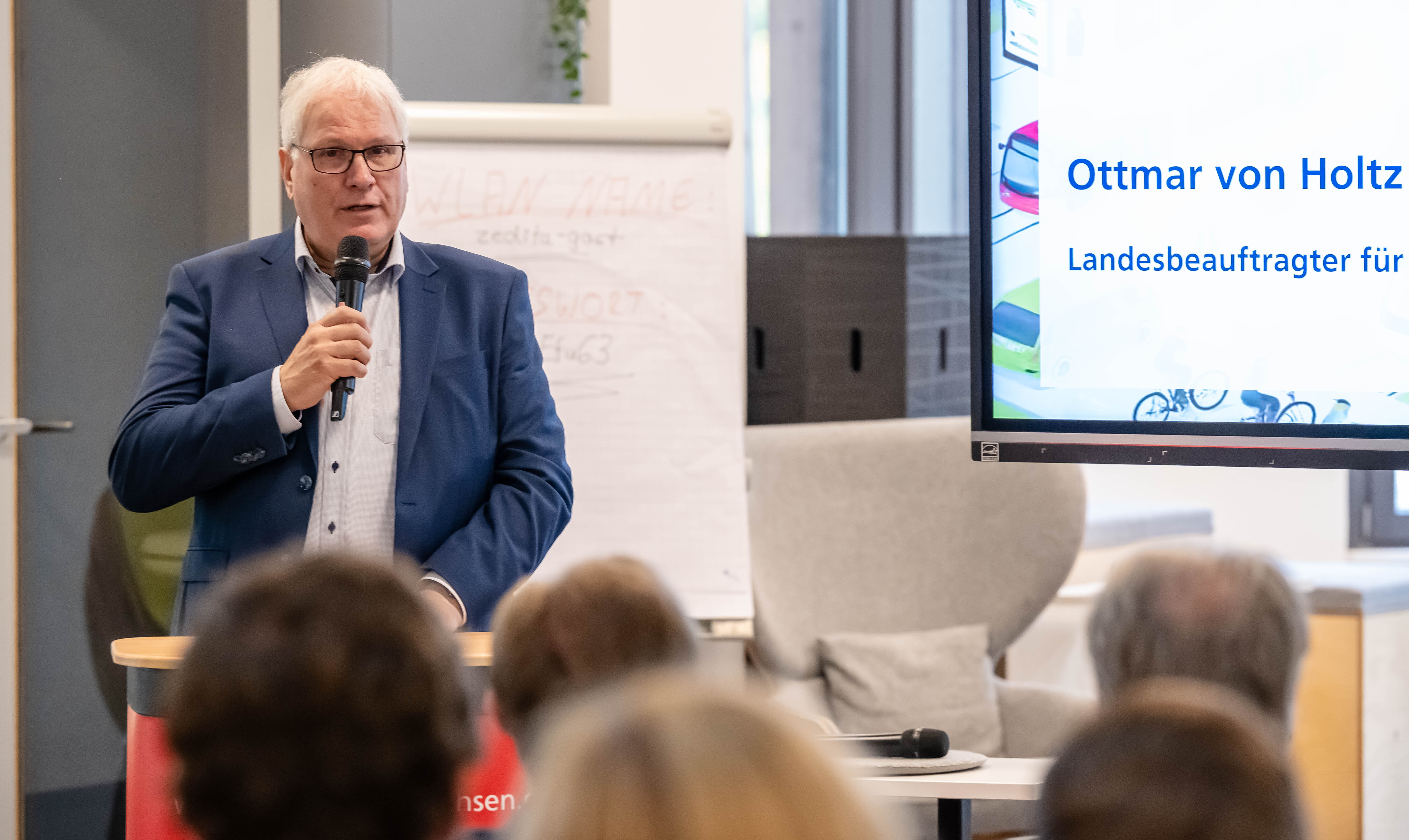 Schon am Morgen war die Aufbruchsstimmung spürbar: Die Teilnehmenden nutzten zunächst die Gelegenheit zum Netzwerken, bevor Ottmar von Holtz, Landesbeauftragter für regionale Landesentwicklung Leine-Weser, das Forum offiziell mit einem Appell eröffnete: „Regionale Mobilität ist der Schlüssel für die Lebensqualität und Zukunftsfähigkeit unserer Region. Wir brauchen mutige Ideen und gemeinsames Handeln, um Lösungen für heute und morgen auf die Straßen zu bringen.“ In seinem Grußwort betonte er die Bedeutung regionaler Mobilitätslösungen für die sehr ländlich geprägte Region Leine-Weser.