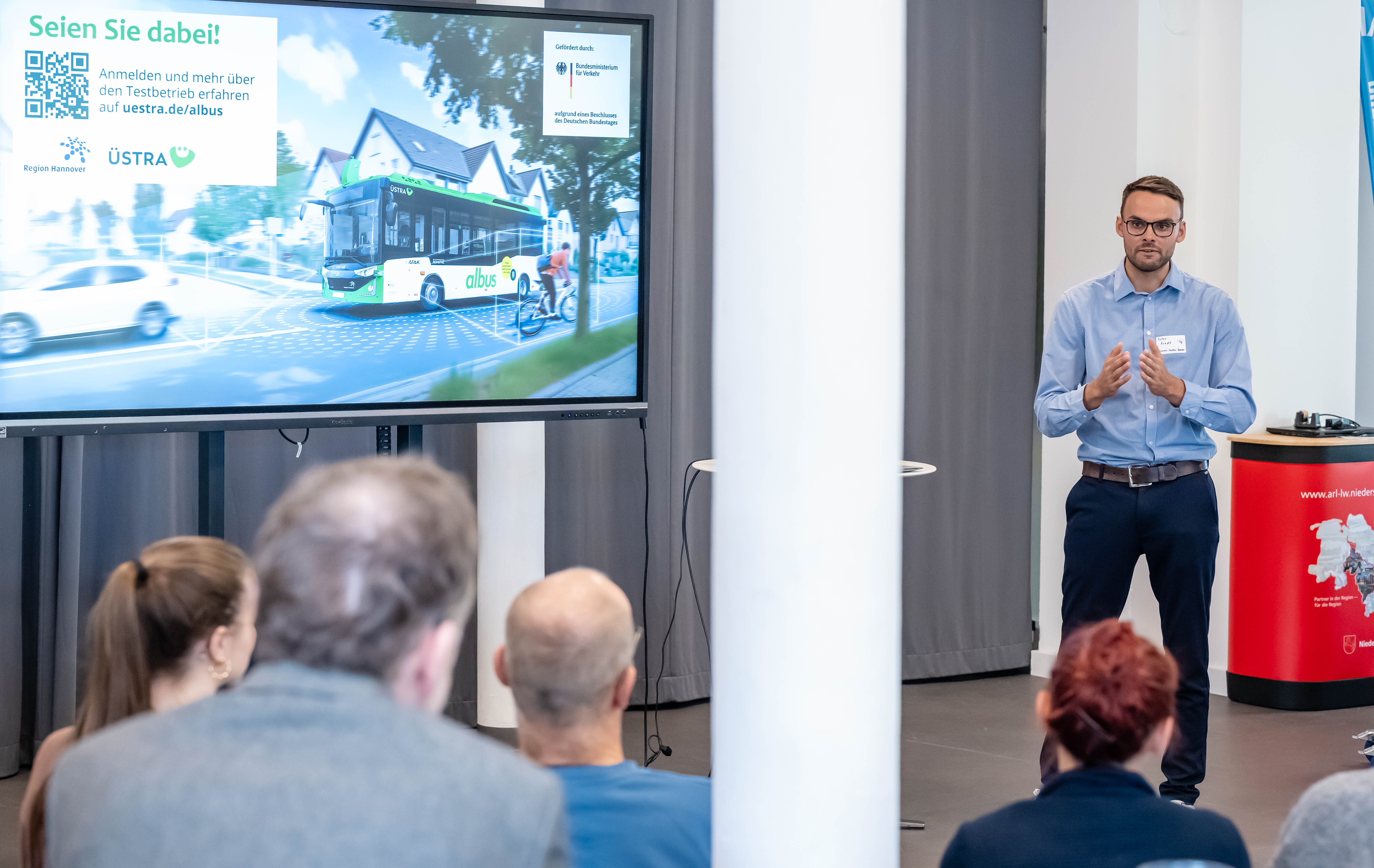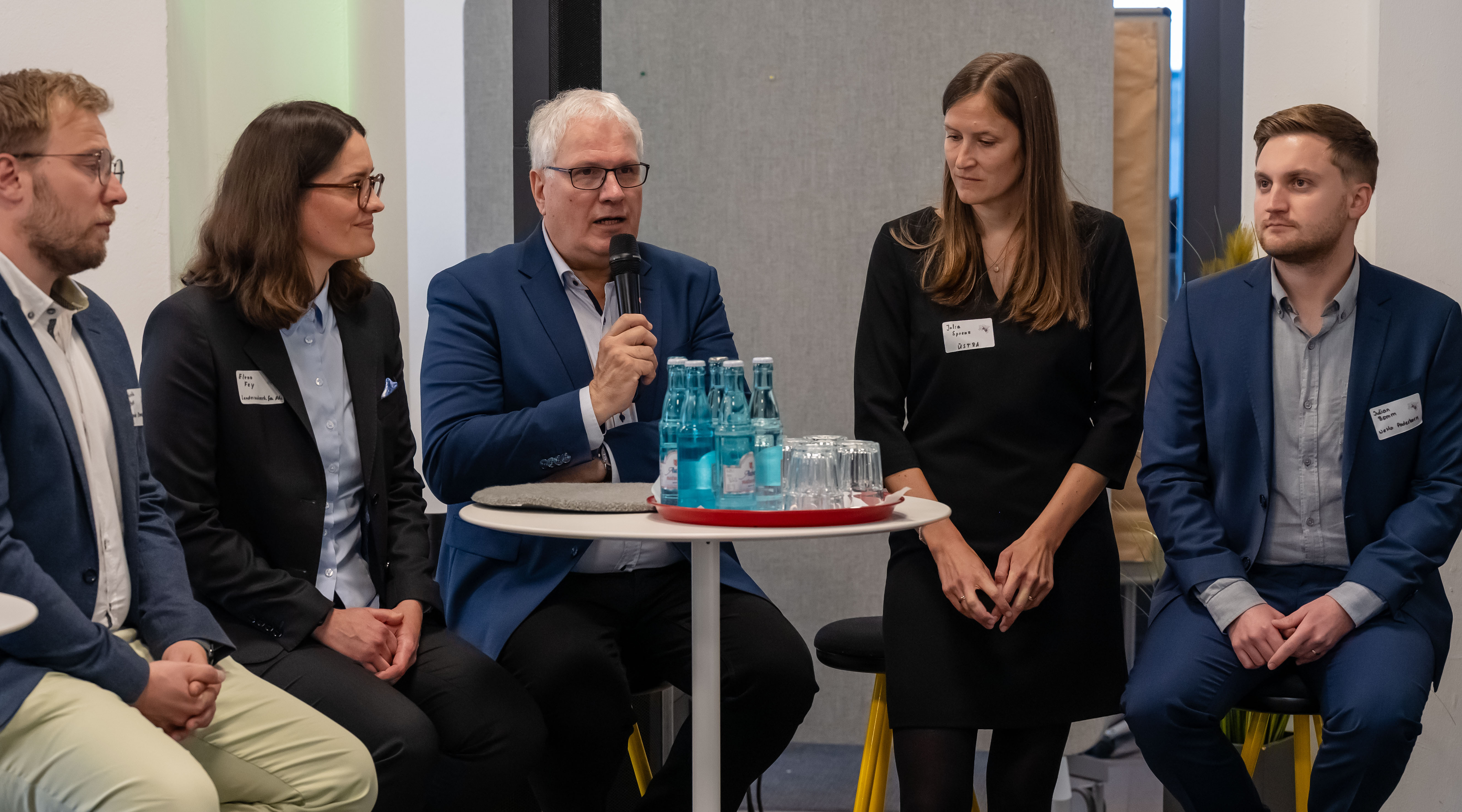 Die Podiumsdiskussion am Nachmittag brachte zentrale Akteure zusammen: Neben dem Landesbeauftragten sprachen Elena Fey von der Landesnahverkehrsgesellschaft Niedersachsen mbH, Bürgermeister Dominik Petters aus Emmerthal, Julia Sprenz von ÜSTRA sowie Julian Bomm von „Neue Mobilität Paderborn e.V.“, darüber wie Mobilität in der Region schon heute funktionieren kann und gleichzeitig Antworten für die Herausforderungen von morgen liefert.