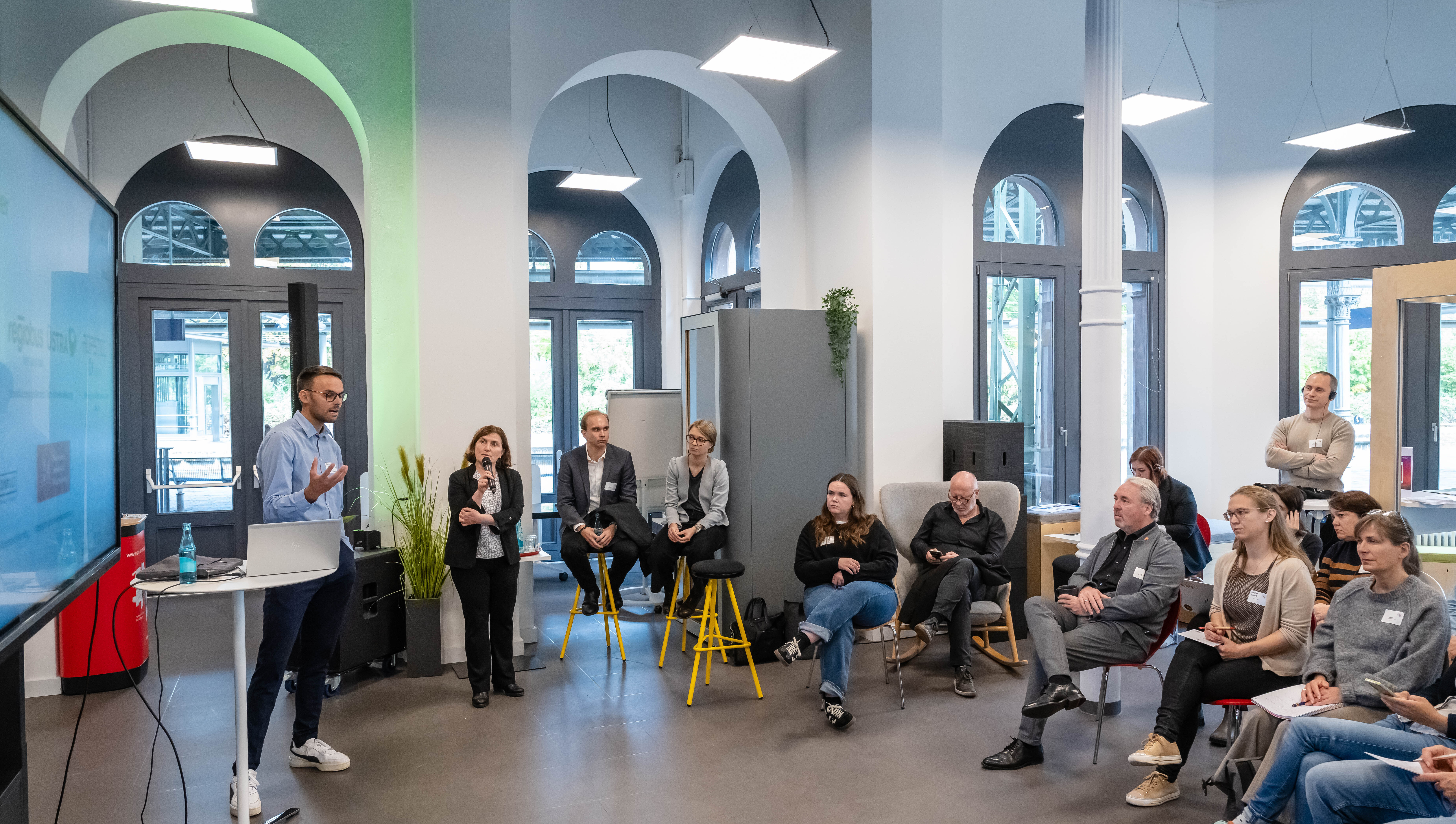 Besonders lebendig wurde es in den Workshops, in denen die Teilnehmenden praxisnah an Themen wie autonomes Fahren, flexible Mobilitätsangebote und Fördermöglichkeiten arbeiteten. Die Diskussionen waren geprägt von Offenheit, Kreativität und dem gemeinsamen Willen, die Mobilitätswende aktiv zu gestalten. Viele Teilnehmende nutzten die Gelegenheit, eigene Ideen einzubringen und sich mit Expertinnen und Experten zu vernetzen.